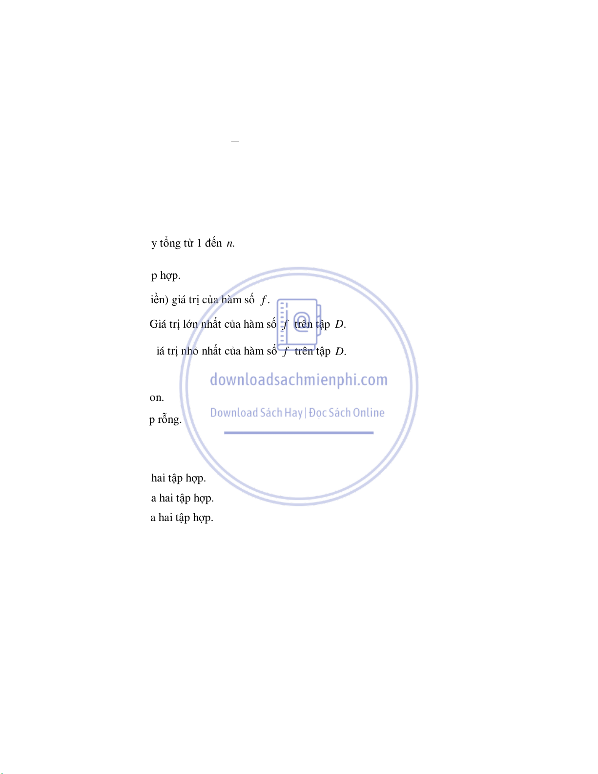 Min f (x) :Giá trị nhỏ nhất của hàm số f trên tập D. x D ∈ : ∈ Thuộc. ⊆, : ⊂ Tập con. ∅ : Tập hợp rỗng. ∀ : Mọi. : ≠ Khác.