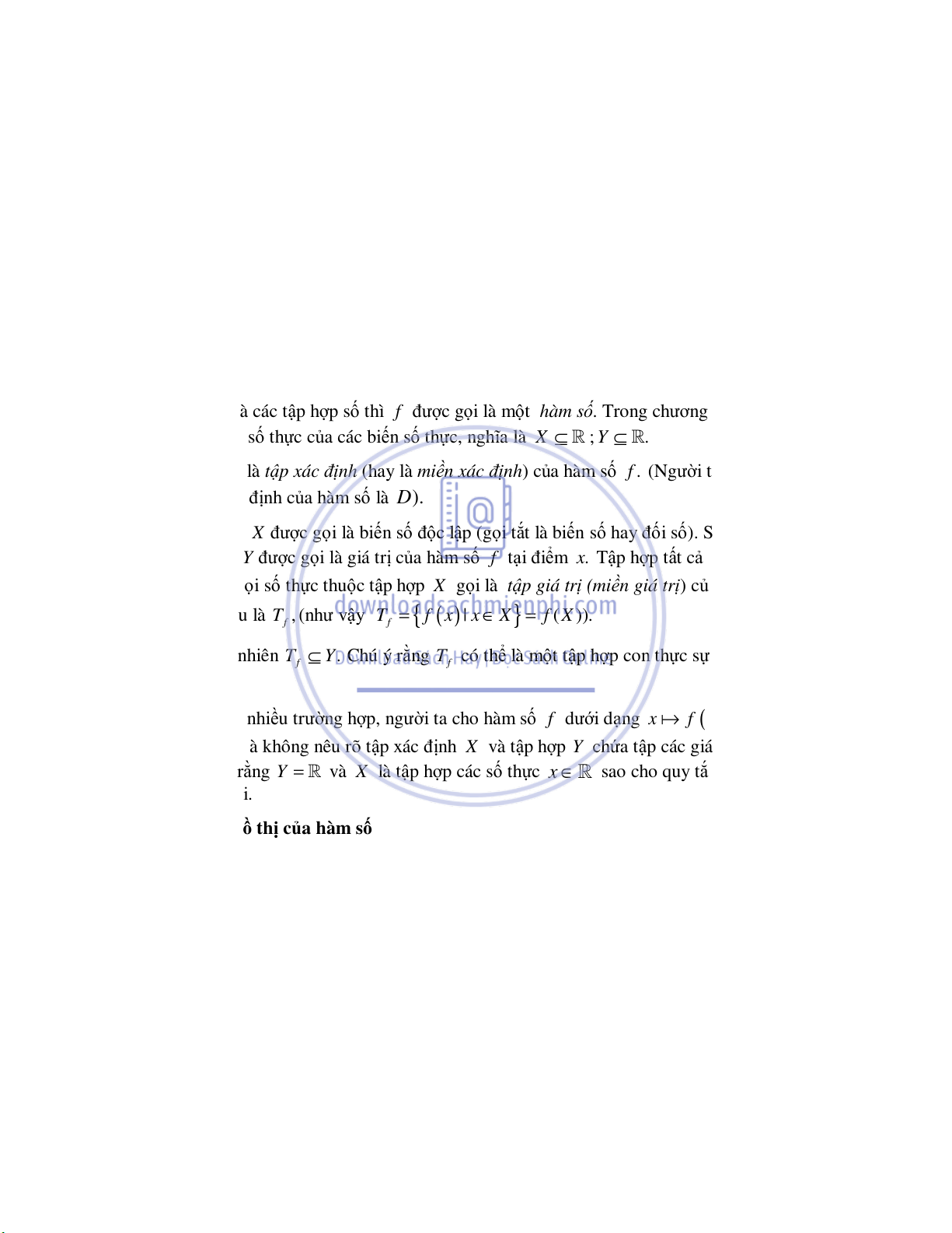 Nếu X ,Y là các tập hợp số thì f được gọi là một hàm số. Trong chương này chúng ta chỉ