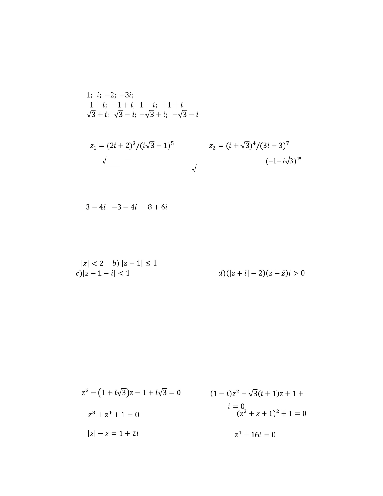 𝑧4 − (1 + 𝑖 + √3)𝑧2 + 𝑖 + √3 = 0.