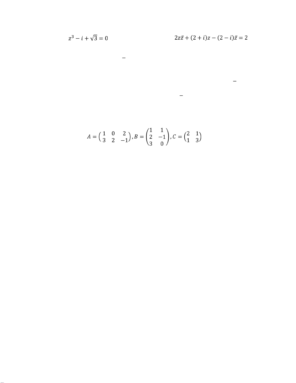 𝑧3 − (2 + 𝑖)𝑧2 + (2 + 2𝑖)𝑧 − 2𝑖 = 0 m)