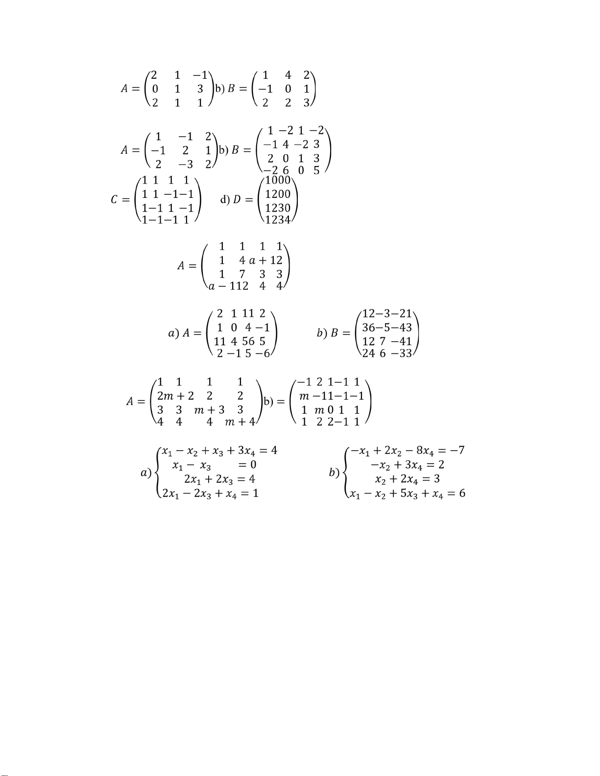 Ma trận - Định thức - Hệ phương trình tuyến tính 1) Cho các ma trận .