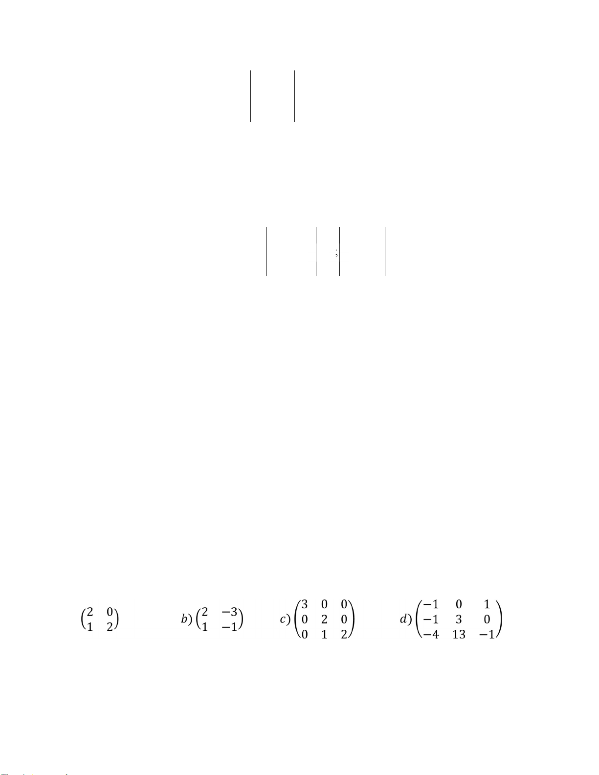 Cho ma trận 𝐴3𝑥3 thỏa mãn |𝐴| = 3. Tính |𝐴𝑇𝐴|, |𝐴3|và |3𝐴|. a b c d 6)