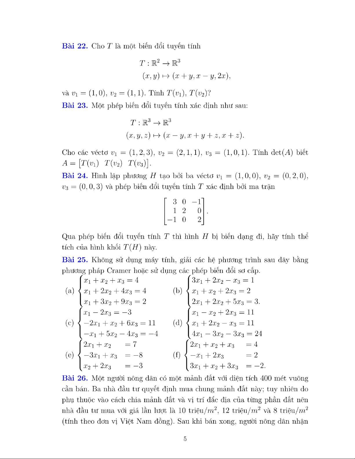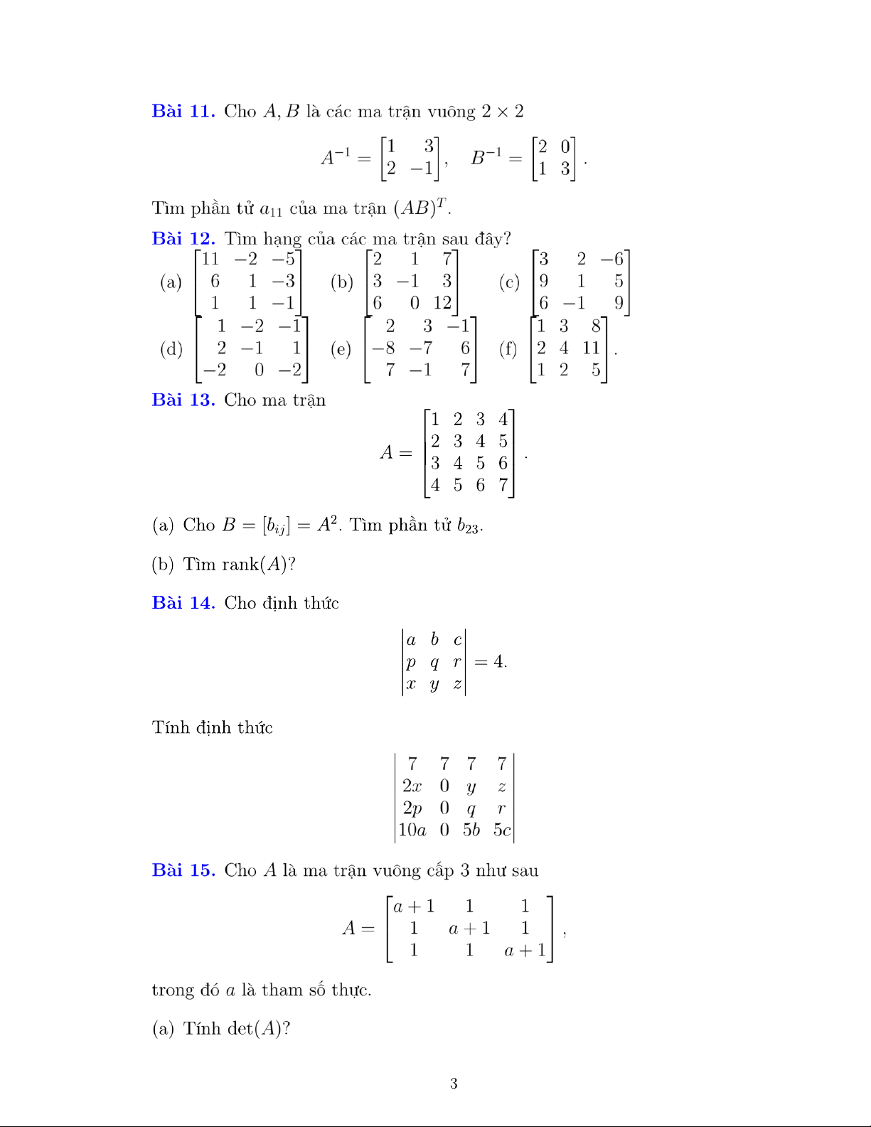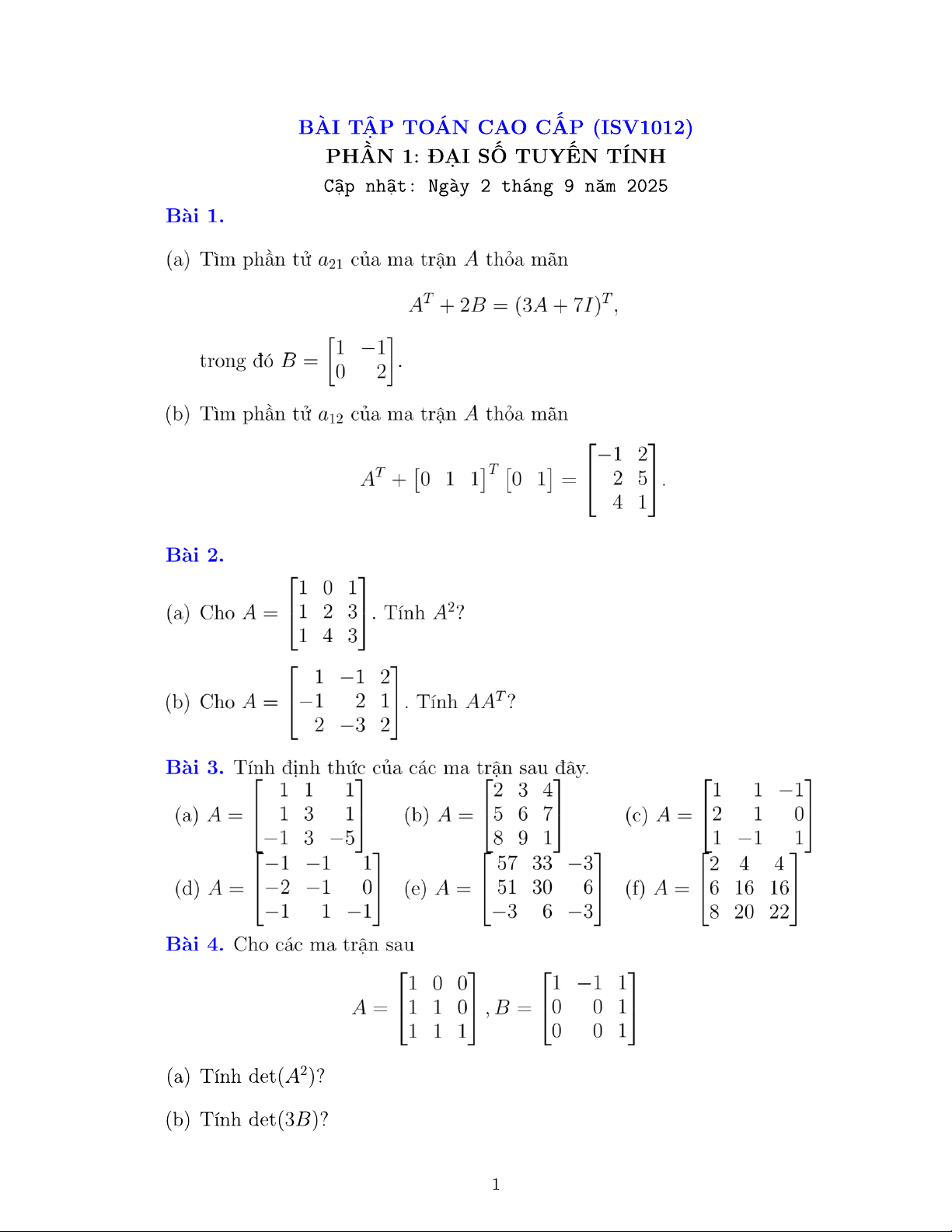 Bài tập Đại số tuyến tính môn Toán cao cấp | Trường Quốc tế - Đại học Quốc gia Hà Nội