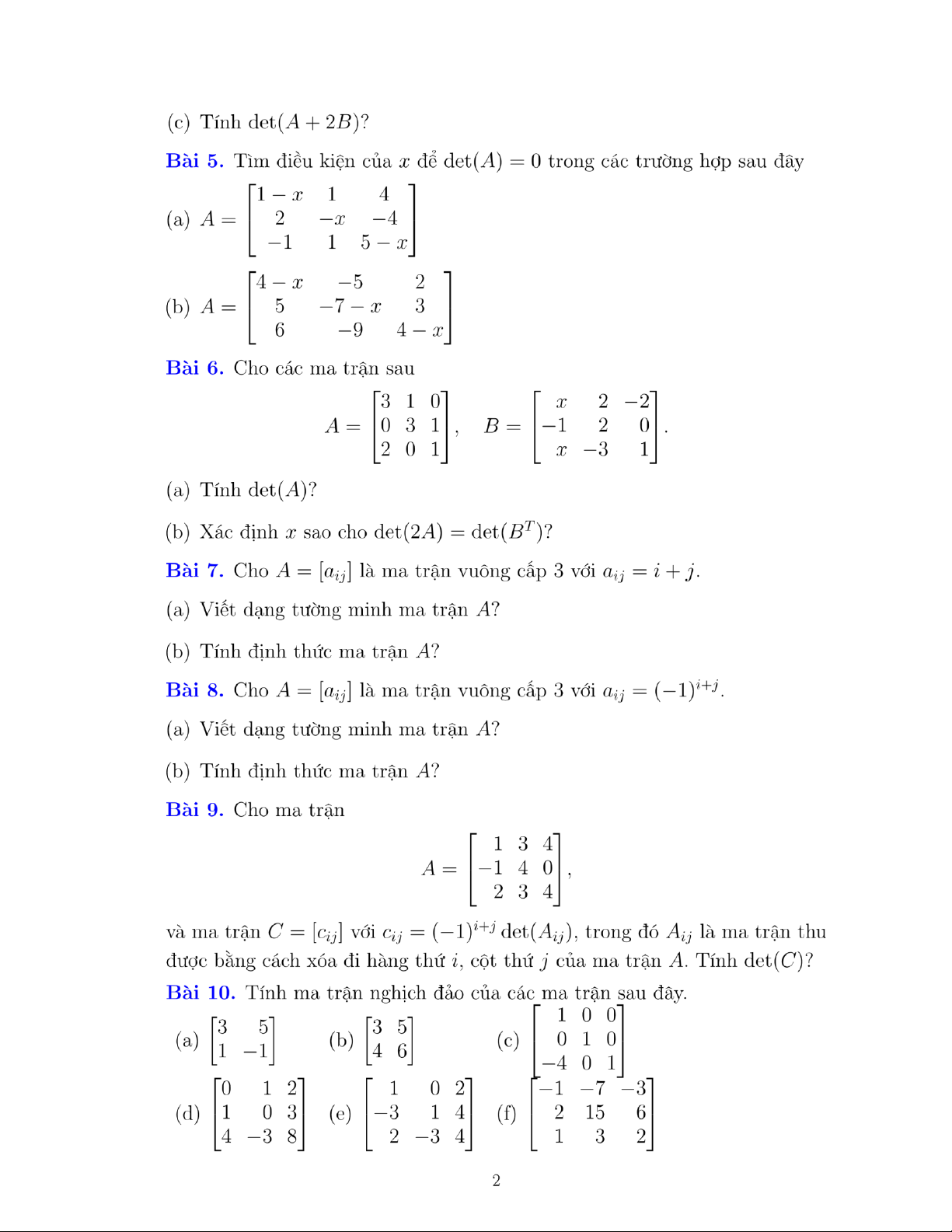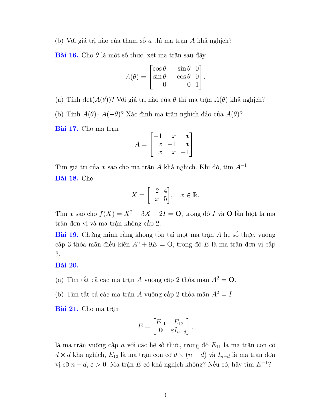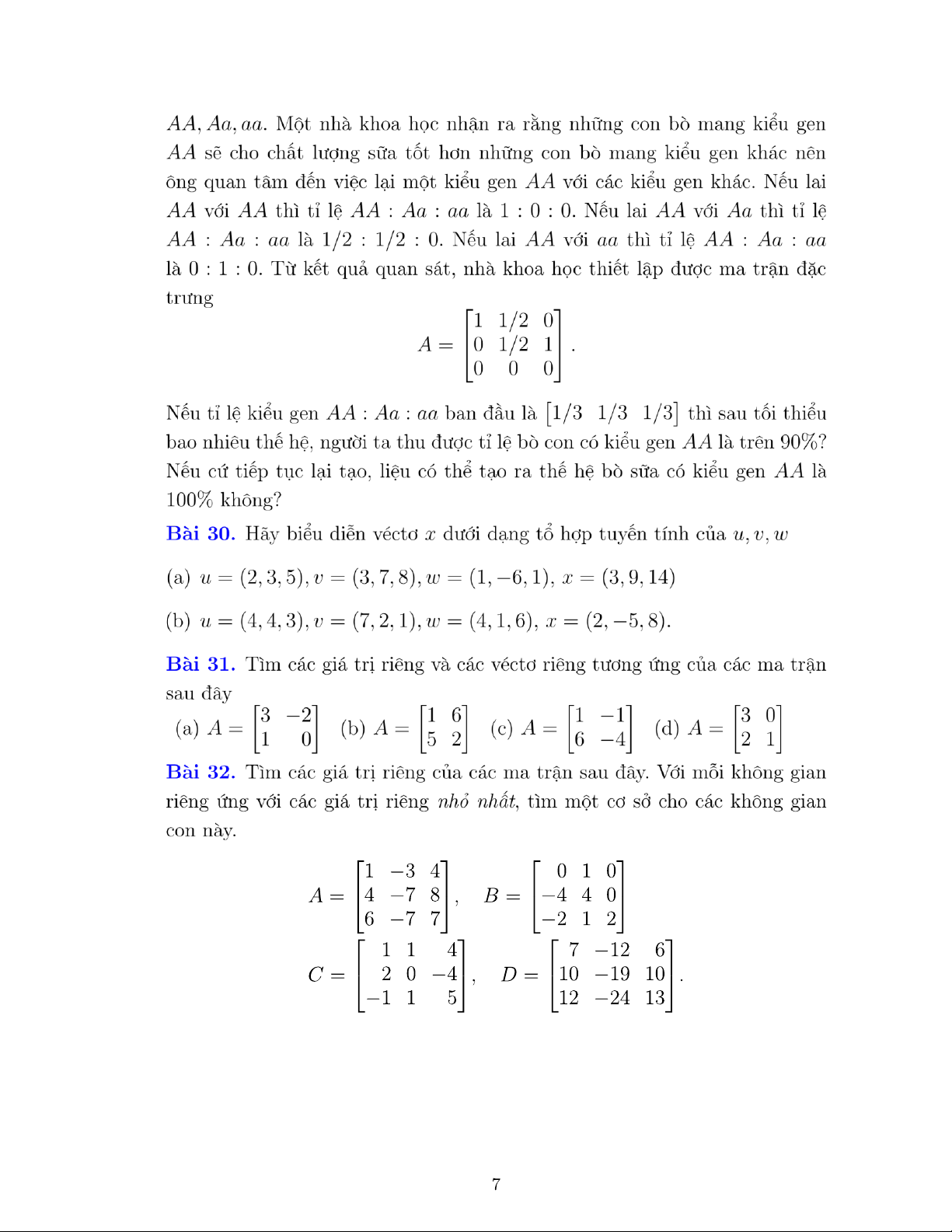 Bài tập Đại số tuyến tính môn Toán cao cấp | Trường Quốc tế - Đại học Quốc gia Hà Nội