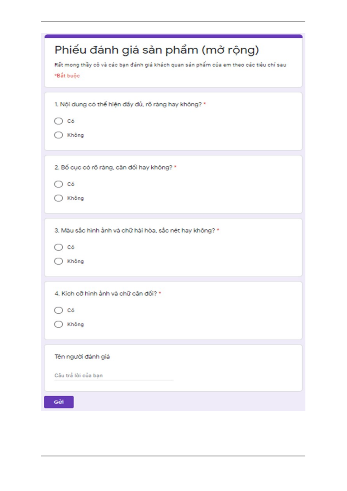 - Đường link Phiếu đánh giá online (google form hoặc microsoft form) đính kèm