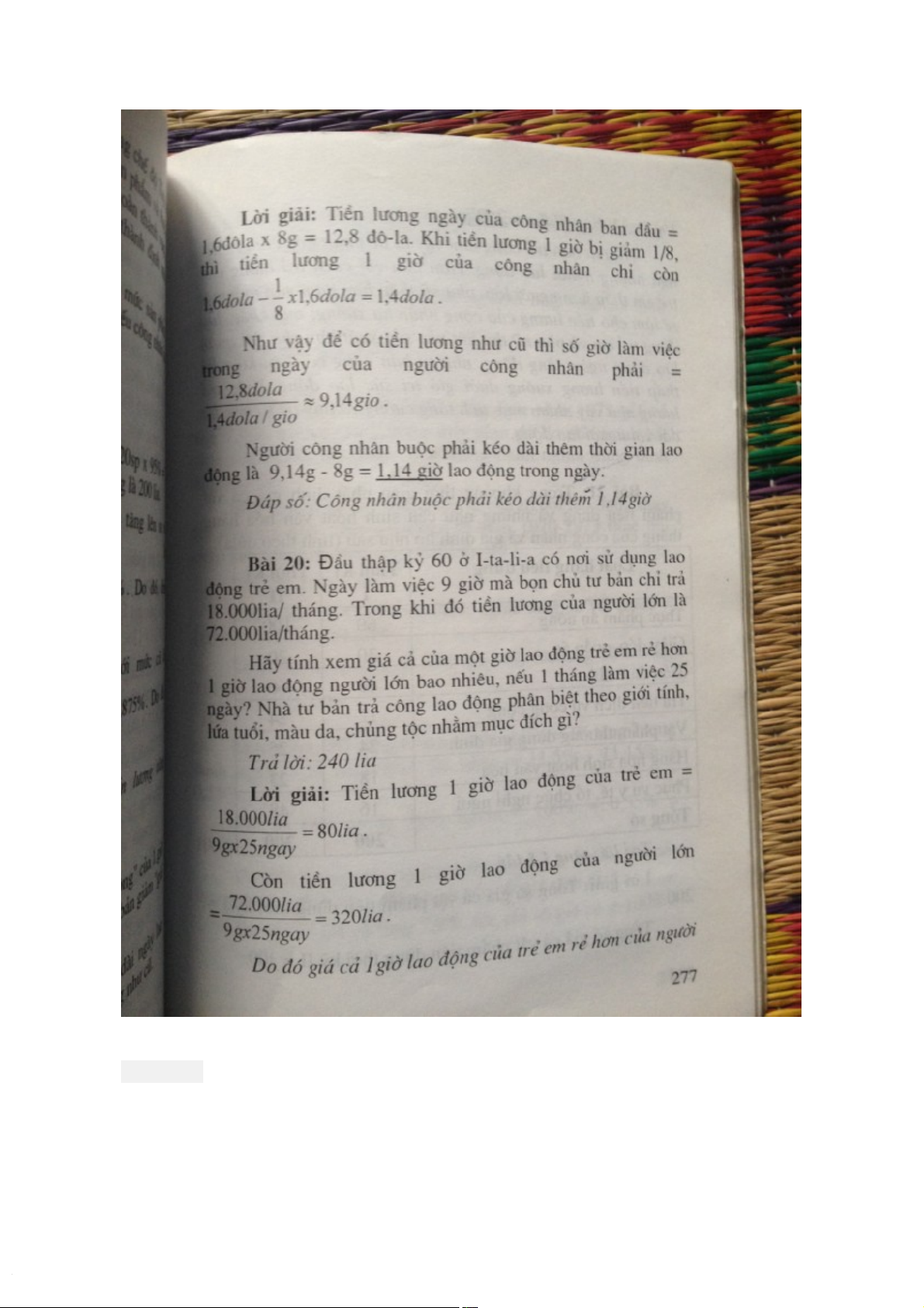 Bài tập số 19: Ngày làm việc 8 giờ “giá cả lao động” của 1 giờ là 1,6 đô-la. Sau đó