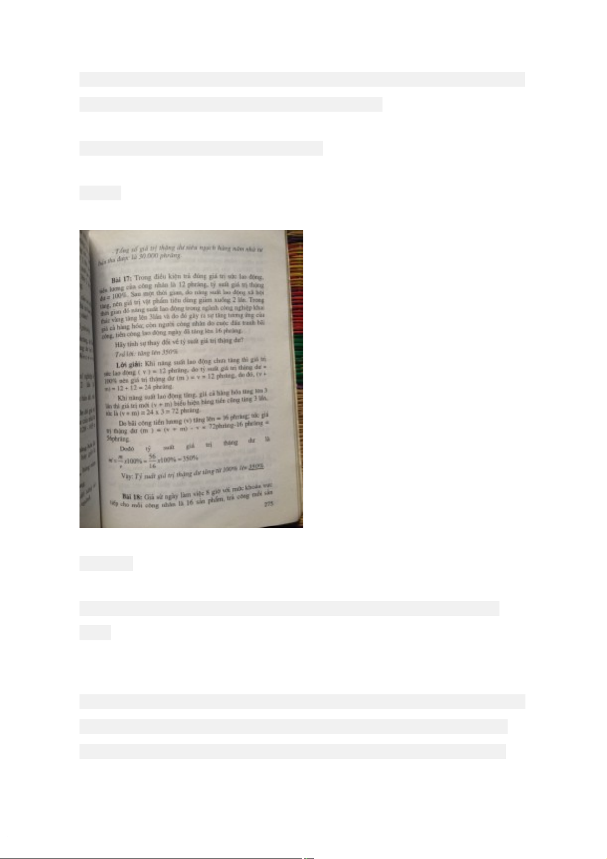 Bài tập số 15: Ngày làm việc 8 giờ, thời gian lao động thặng dư là 4 giờ. Sau đó do
