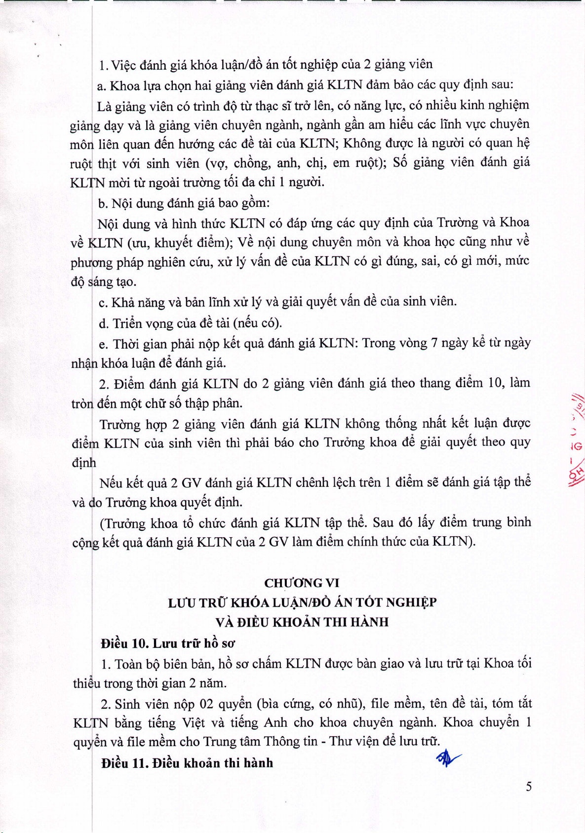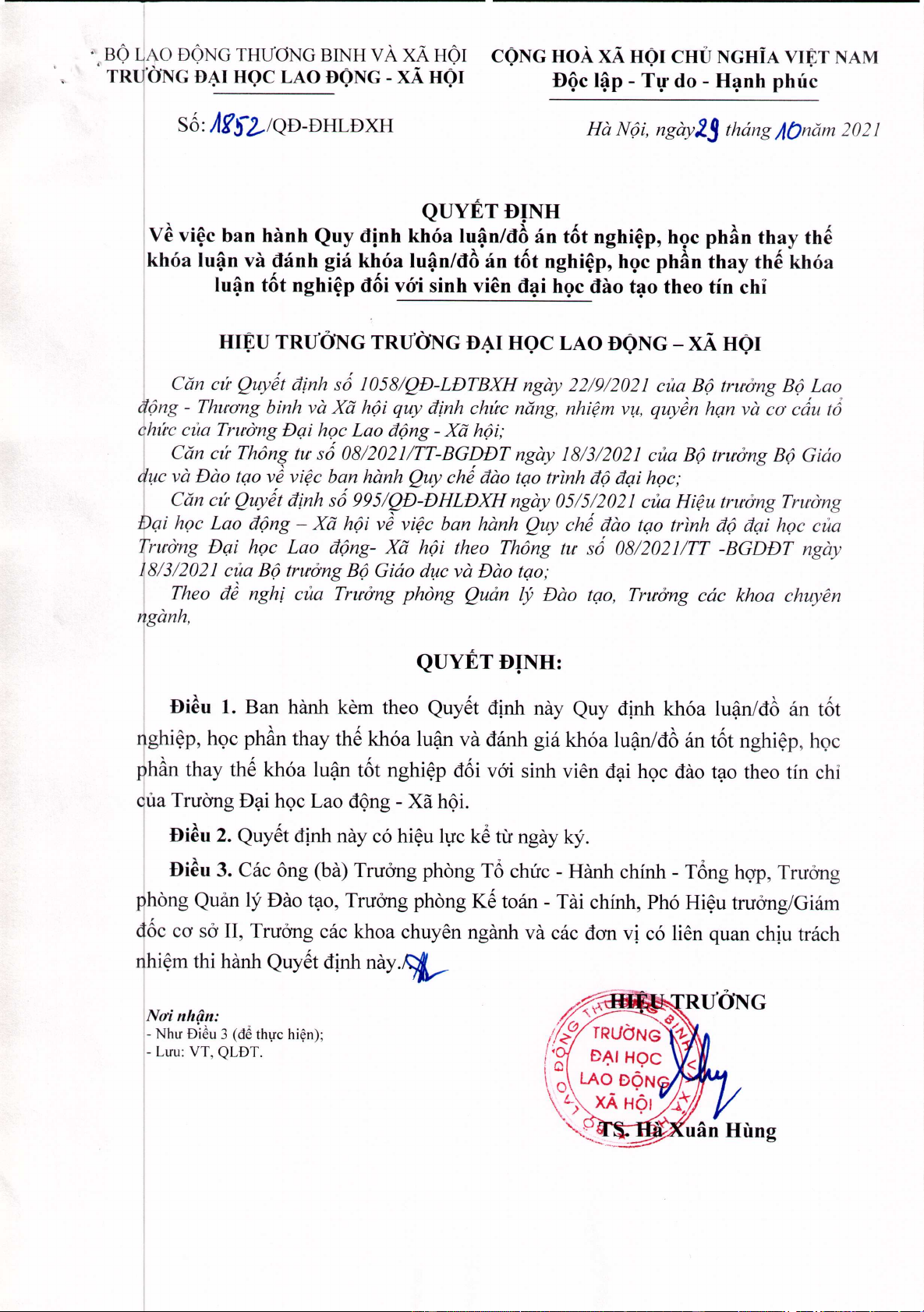 vi~c ban hanh Quy djnh khoa lu~n/dA an t8t nghi~p, hoc phAn thay th~