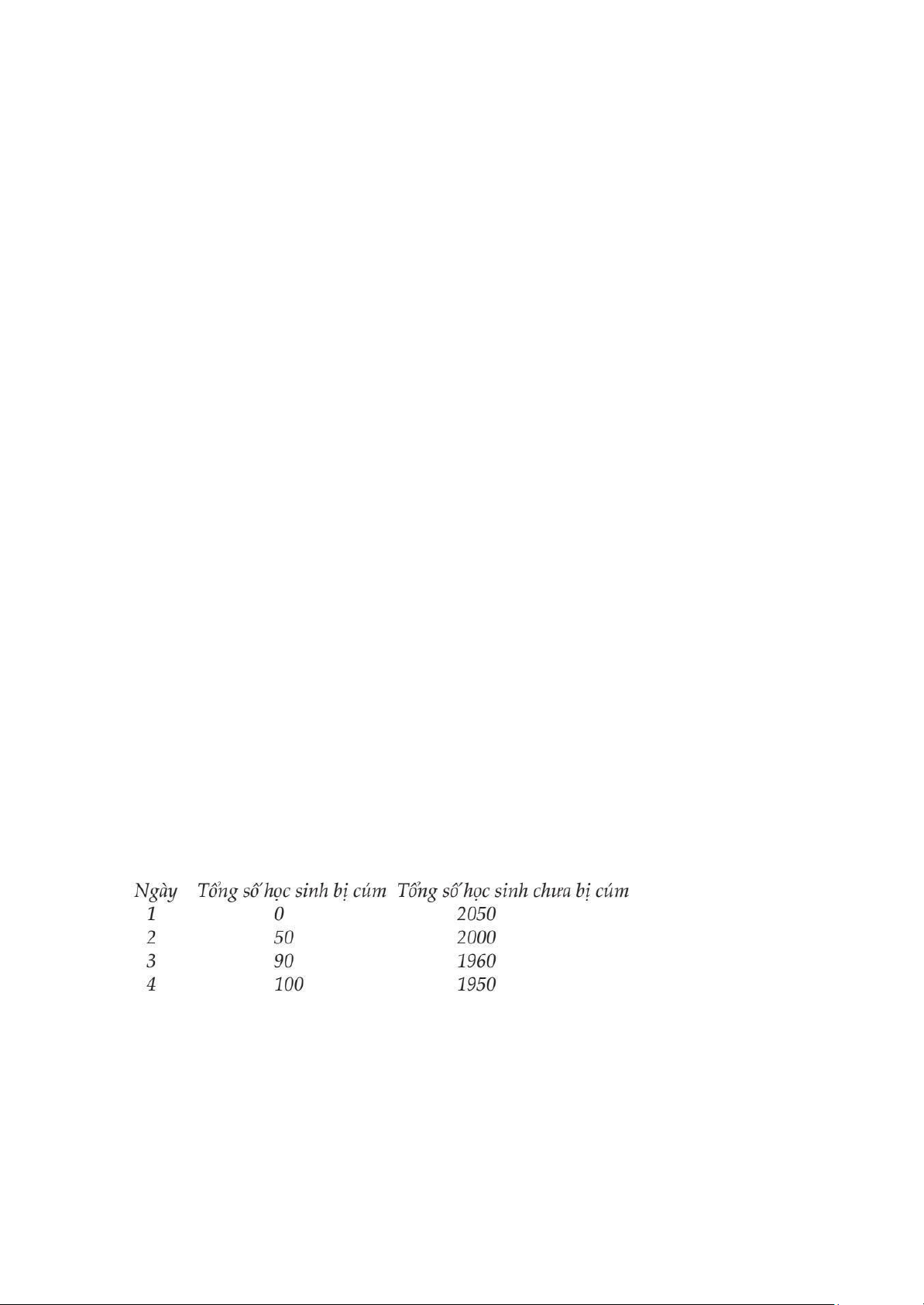 (4) Số học sinh có nguy cơ bị cúm vào ngày thứ 4 là: ĐA: 1950