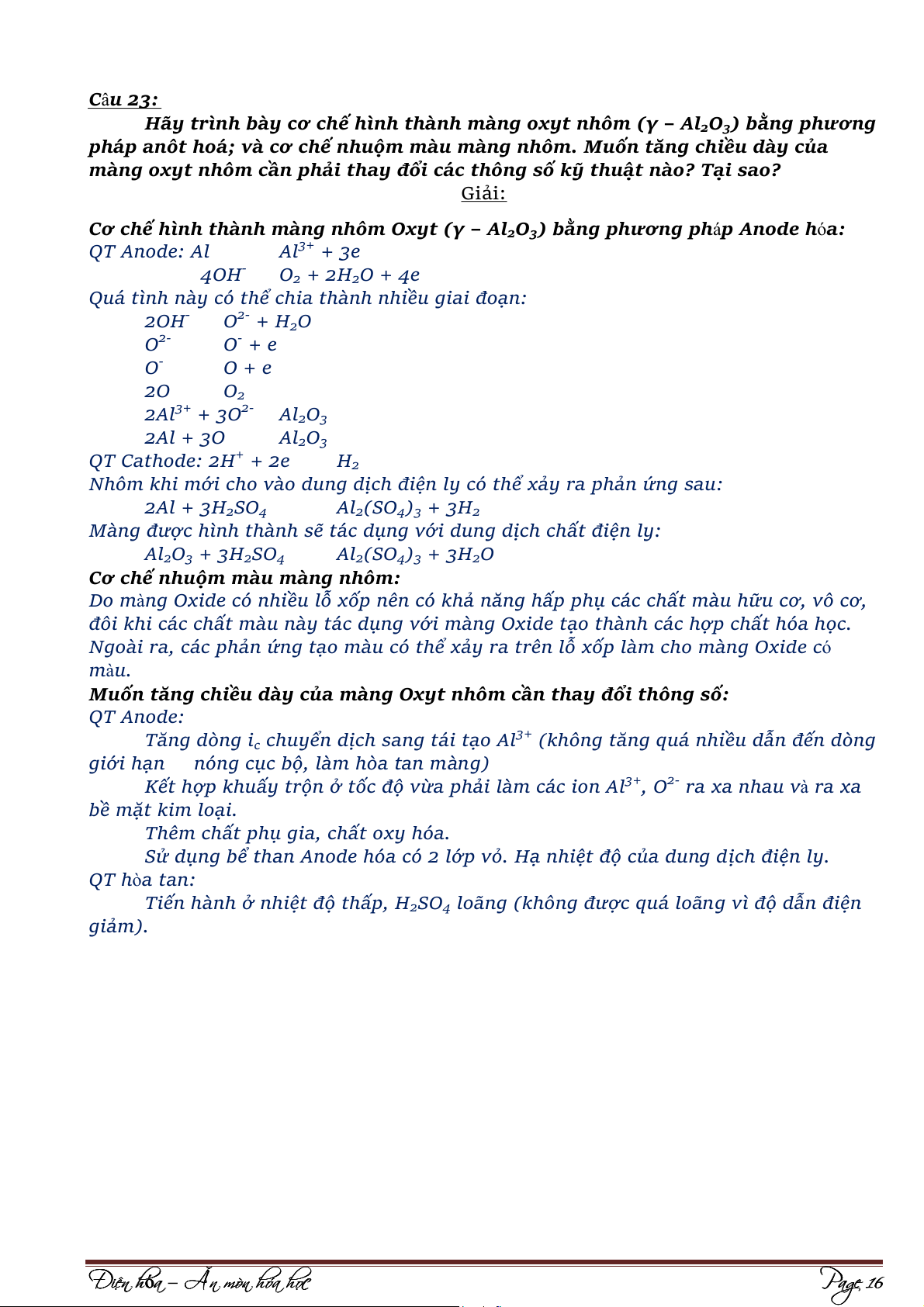 Hãy trình bày cơ chế hình thành màng oxyt nhôm (γ – Al2O3) bằng phương