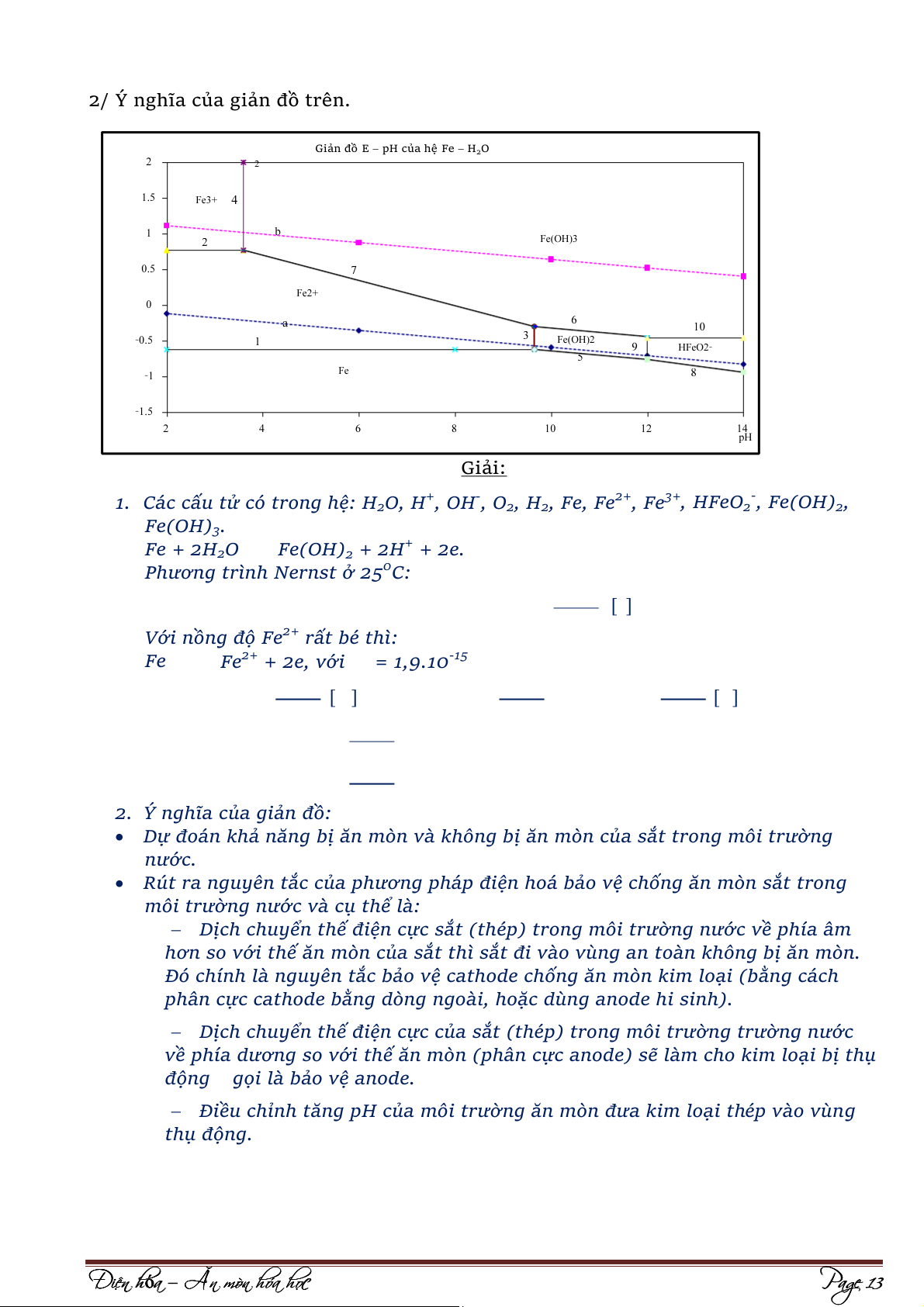 Điều chỉnh tăng pH của môi trường ăn mòn đưa kim loại thép vào vùng thụ động. Đi Đ ện hó n h a ó – Ăn mòn hóa họ c Page 13