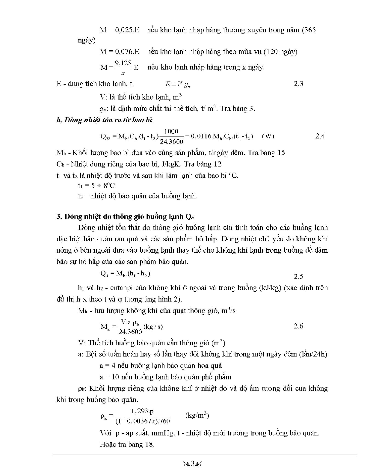 Dòng nhiệt tổn thất do thông gió buồng lạnh chỉ tính toán cho các buồng lạnh đặc biệt bảo quản rau quả và các sản phẩm hô hấp. Dòng nhiệt chủ yếu do không khínóng ở bên ngoài đưa vào buồng lạnh thay thế cho không khí lạnh trong buồng để đảm bảo sự hô hấp của các sản phẩm bảo quản.