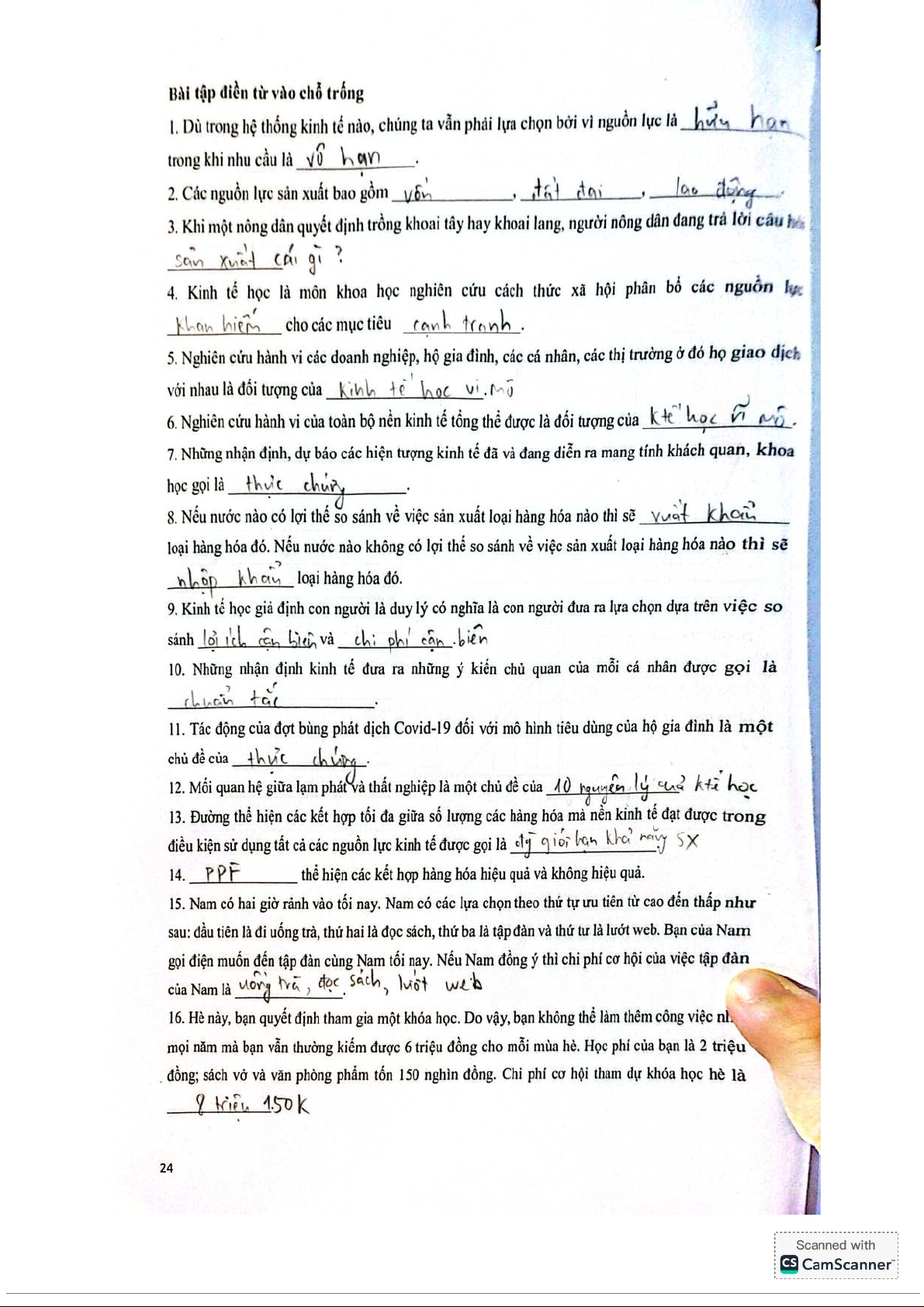 Bài tập điền từ vào chỗ trống môn Kinh tế vi mô | Trường Đại học Kinh Tế Quốc Dân