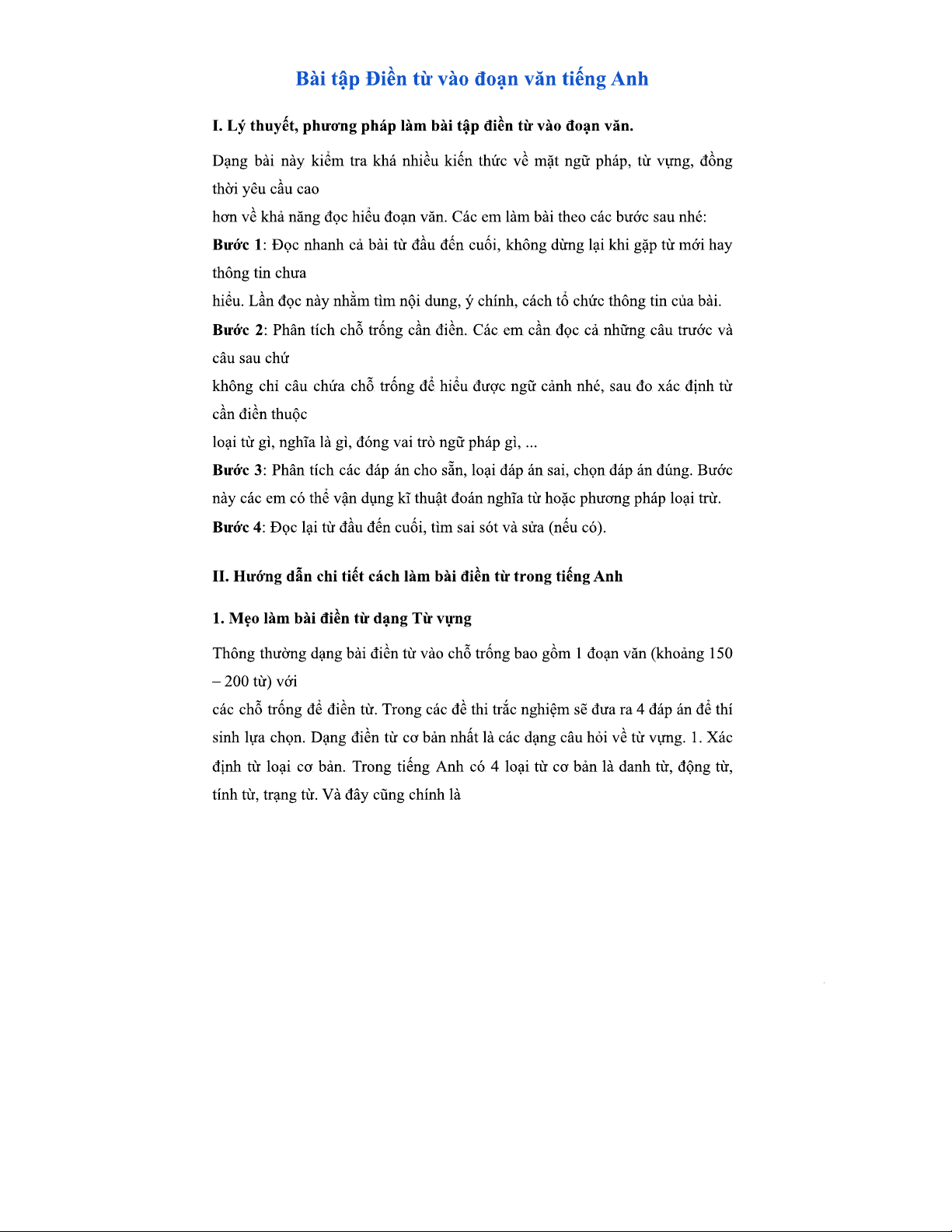 Bài tập Điền từ vào đoạn văn Tiếng Anh (A2 - Ghi chú chi tiết)