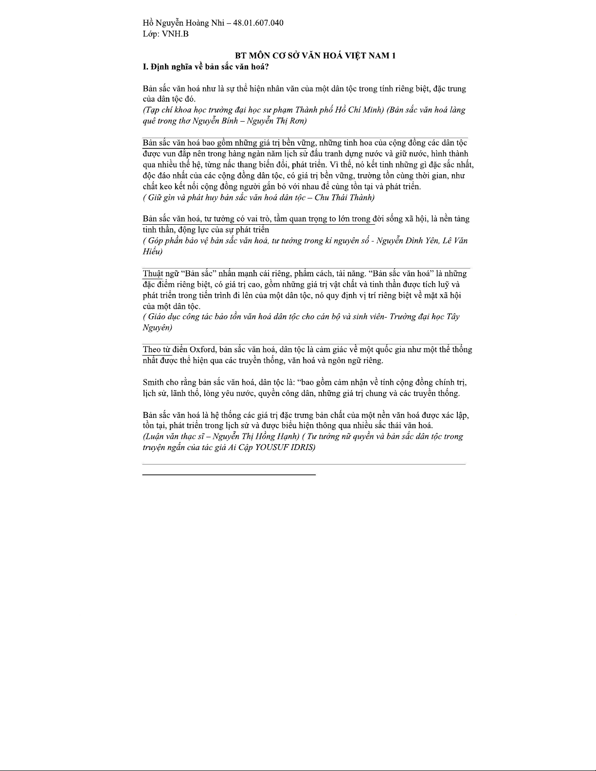 BÀI TẬP ĐỊNH NGHĨA VỀ BẢN SẮC VĂN HOÁ - VNH.B