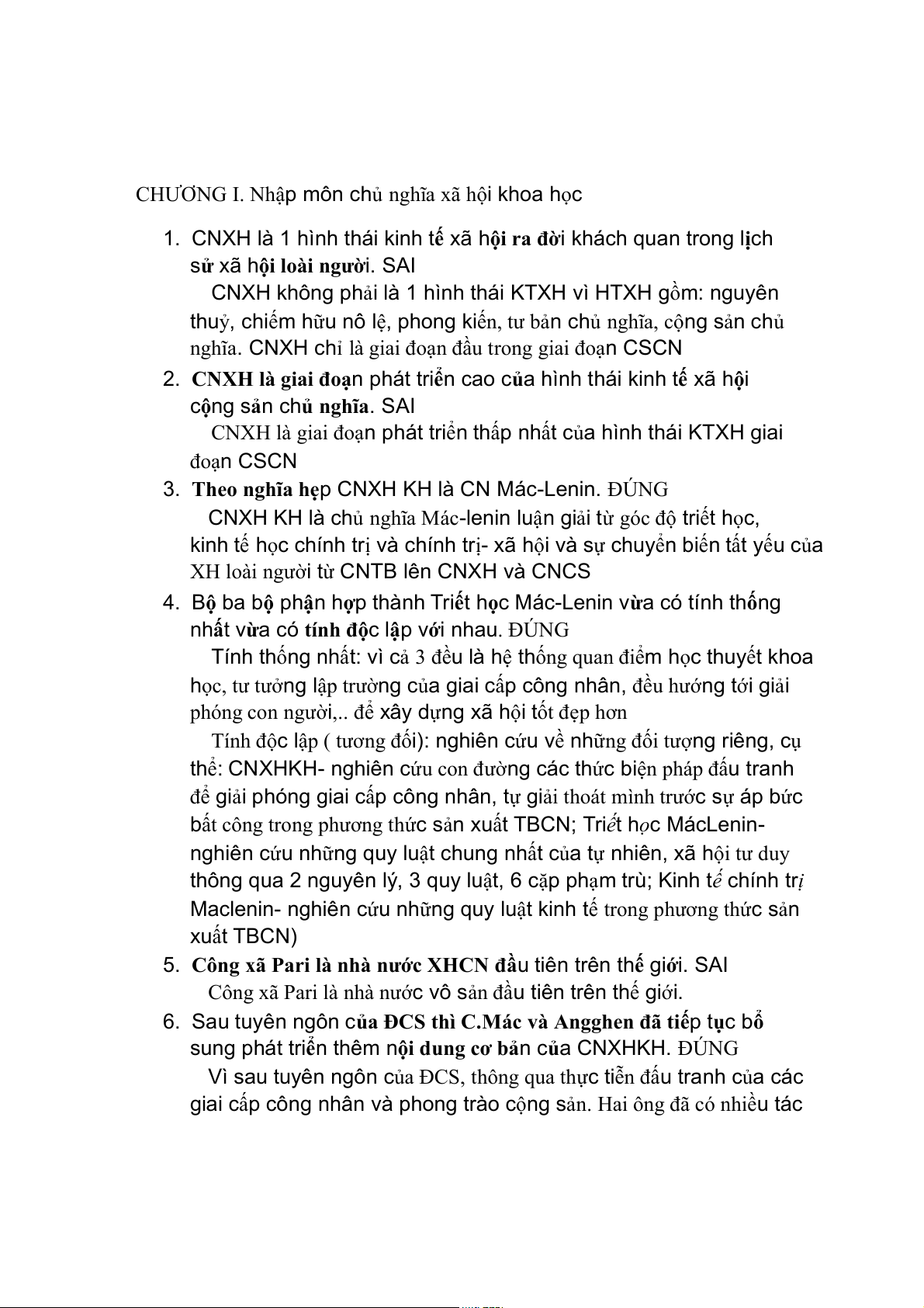 3. Theo nghĩa hẹp CNXH KH là CN Mác-Lenin. ĐÚNG
