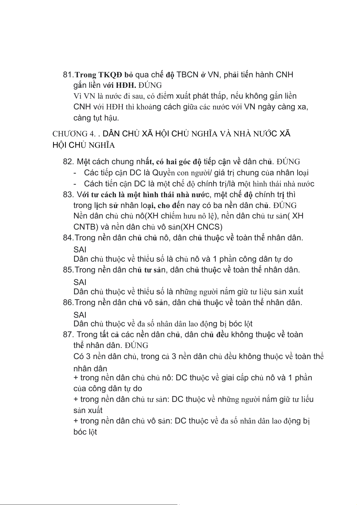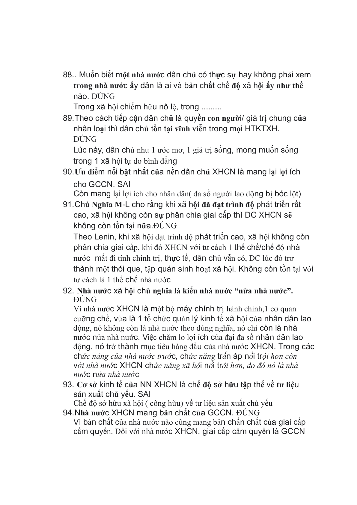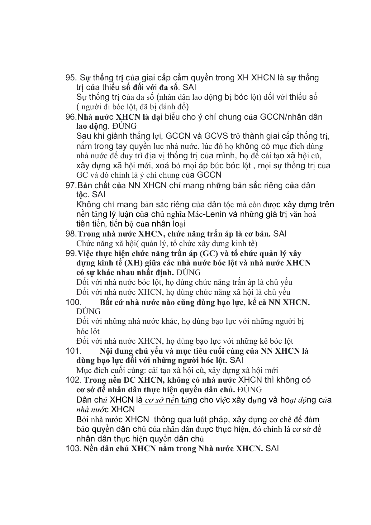 103. Nền dân chủ XHCN nằm trong Nhà nước XHCN. SAI