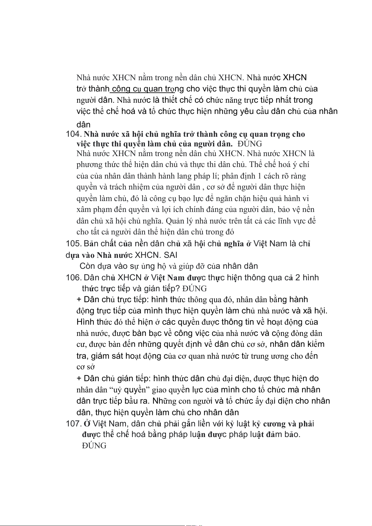106. Dân chủ XHCN ở Việt Nam được thực hiện thông qua cả 2 hình