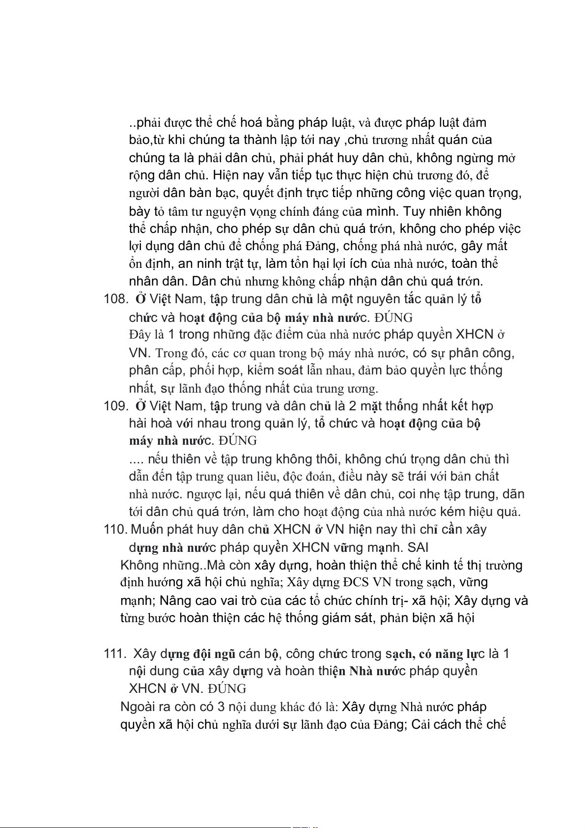 110. Muốn phát huy dân chủ XHCN ở VN hiện nay thì chỉ cần xây