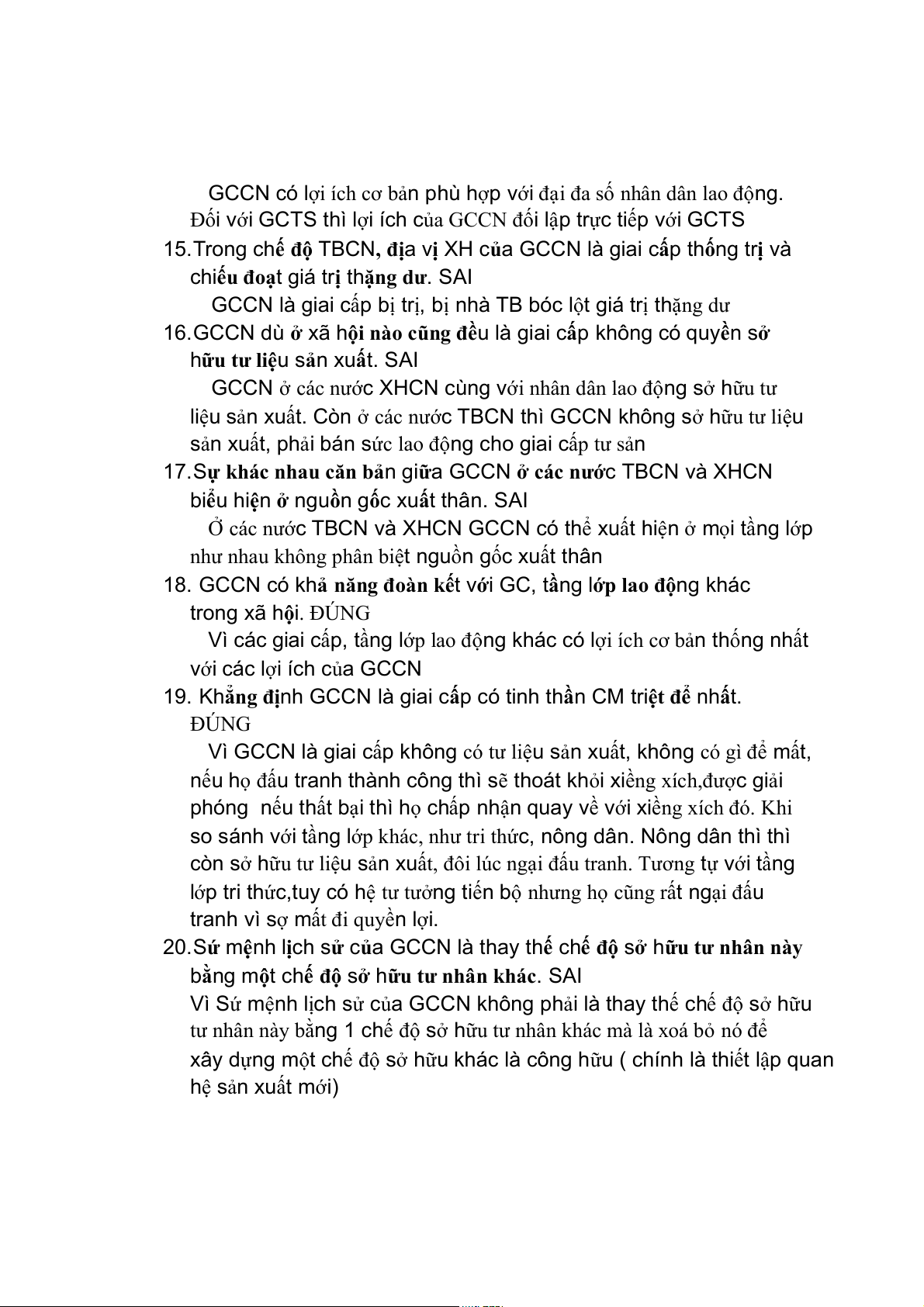 16. GCCN dù ở xã hội nào cũng đều là giai cấp không có quyền sở