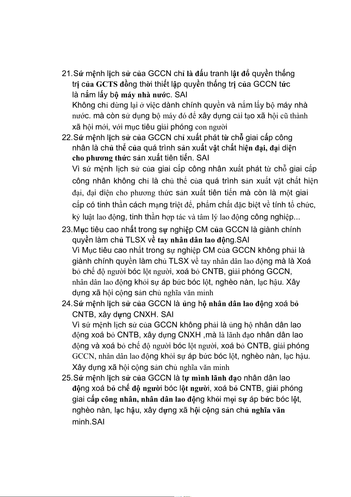 21. Sứ mệnh lịch sử của GCCN chỉ là đấu tranh lật đổ quyền thống