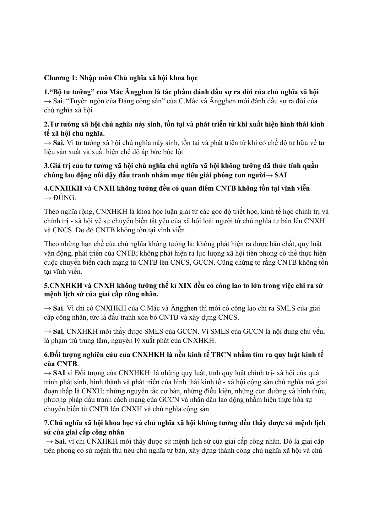 1.“Bộ tư tưởng” của Mác Ăngghen là tác phẩm đánh dấu sự ra đời của chủ nghĩa xã hội