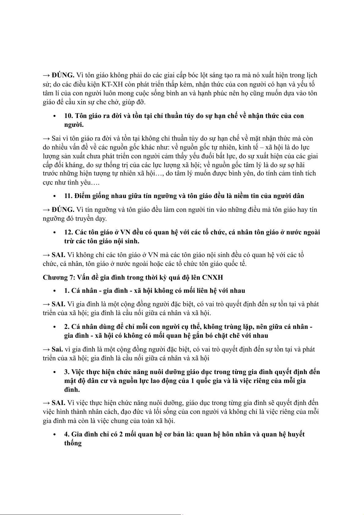 → SAI vì Đối tượng của CNXHKH: là những quy luật, tính quy luật chính trị- xã hội của quá