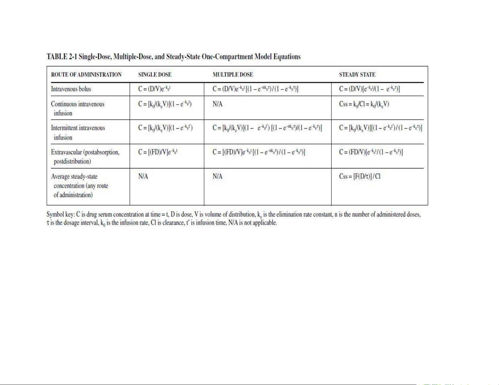 t1/2 = 0,693/kel hoặc tính từ đồ thị Khoảng cách đưa liều 0 τ = �� . �1/2 0,693