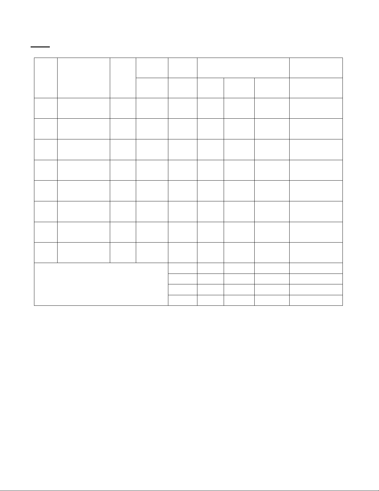 Bài 9: Hãy hoàn thiện bảng thanh toán công tác phí sau đây: STT Họ và Tên Chức Phụ