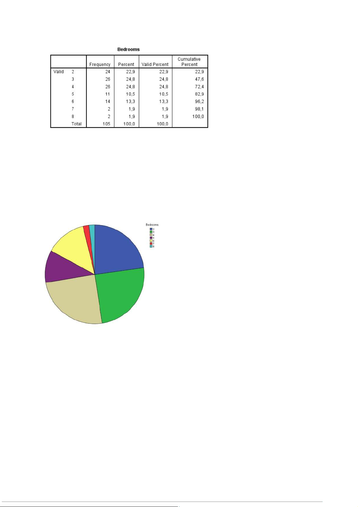1. Bảng phân phối tần số đơn giản cho biến Bedrooms.