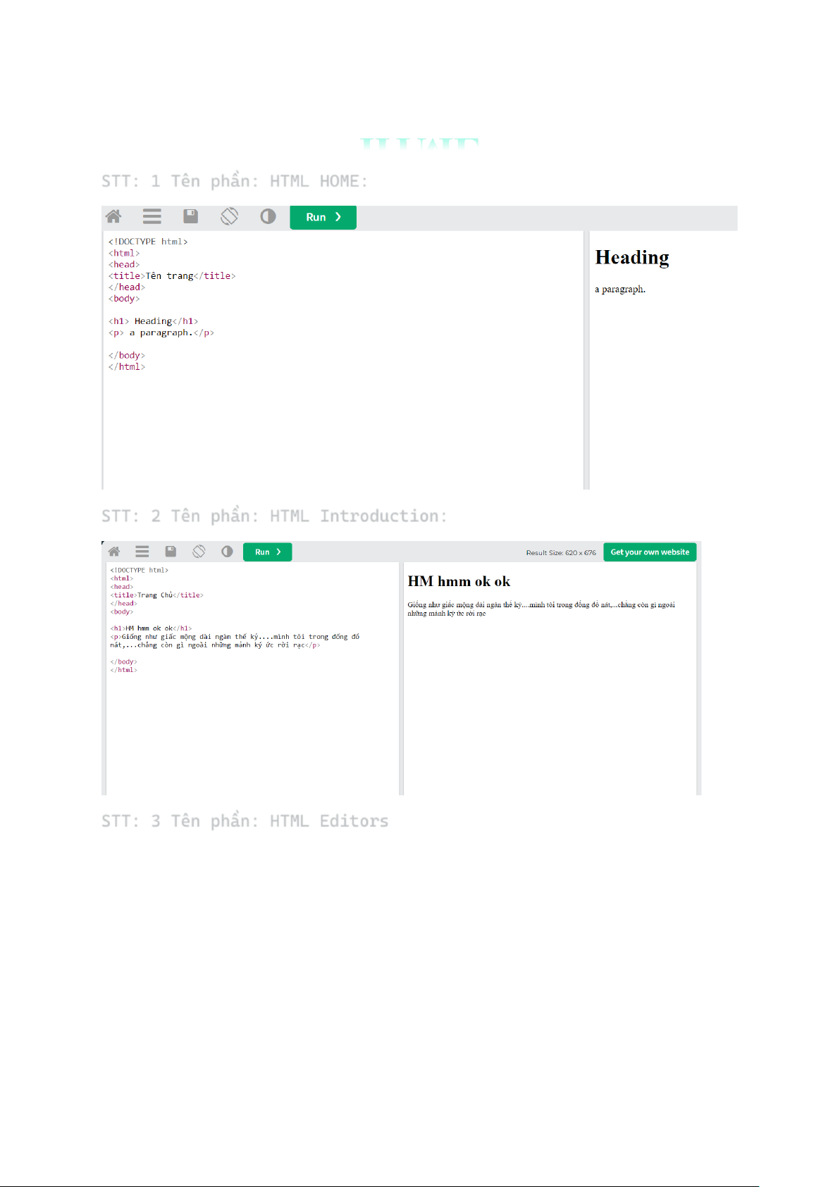 STT: 3 Tên phần: HTML Editors