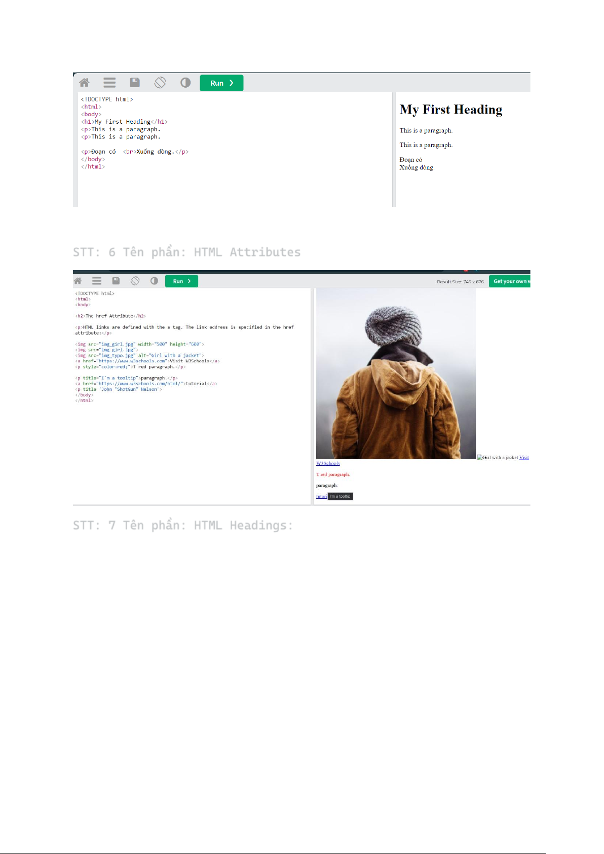 STT: 7 Tên phần: HTML Headings: