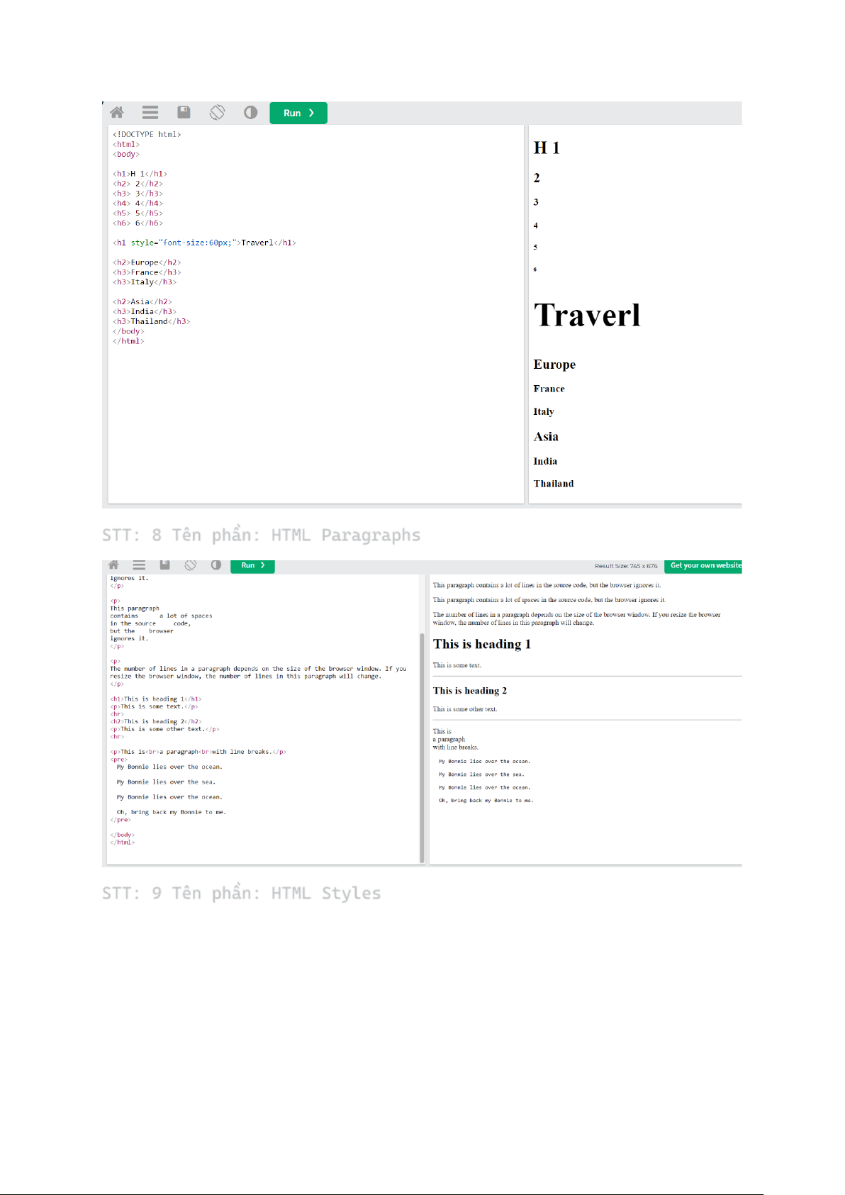 STT: 10 Tên phần: HTML Formatting