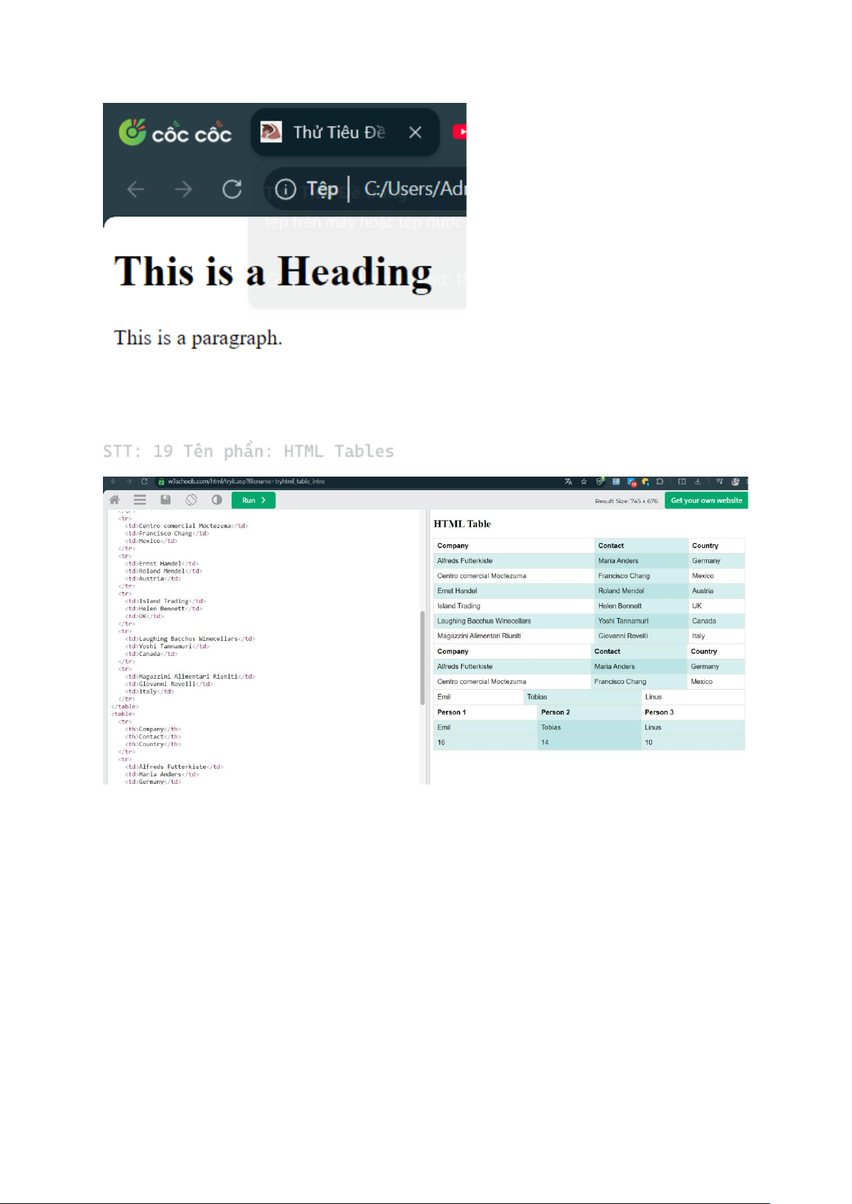 STT: 19 Tên phần: HTML Tables
