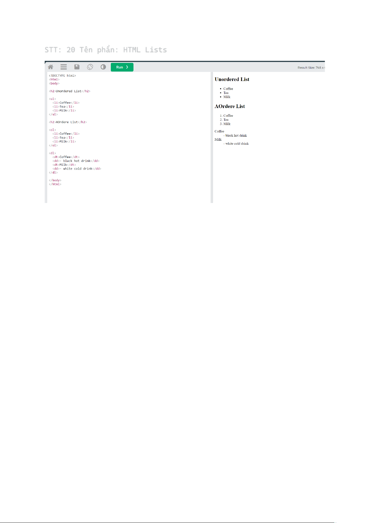 STT: 20 Tên phần: HTML Lists CSS