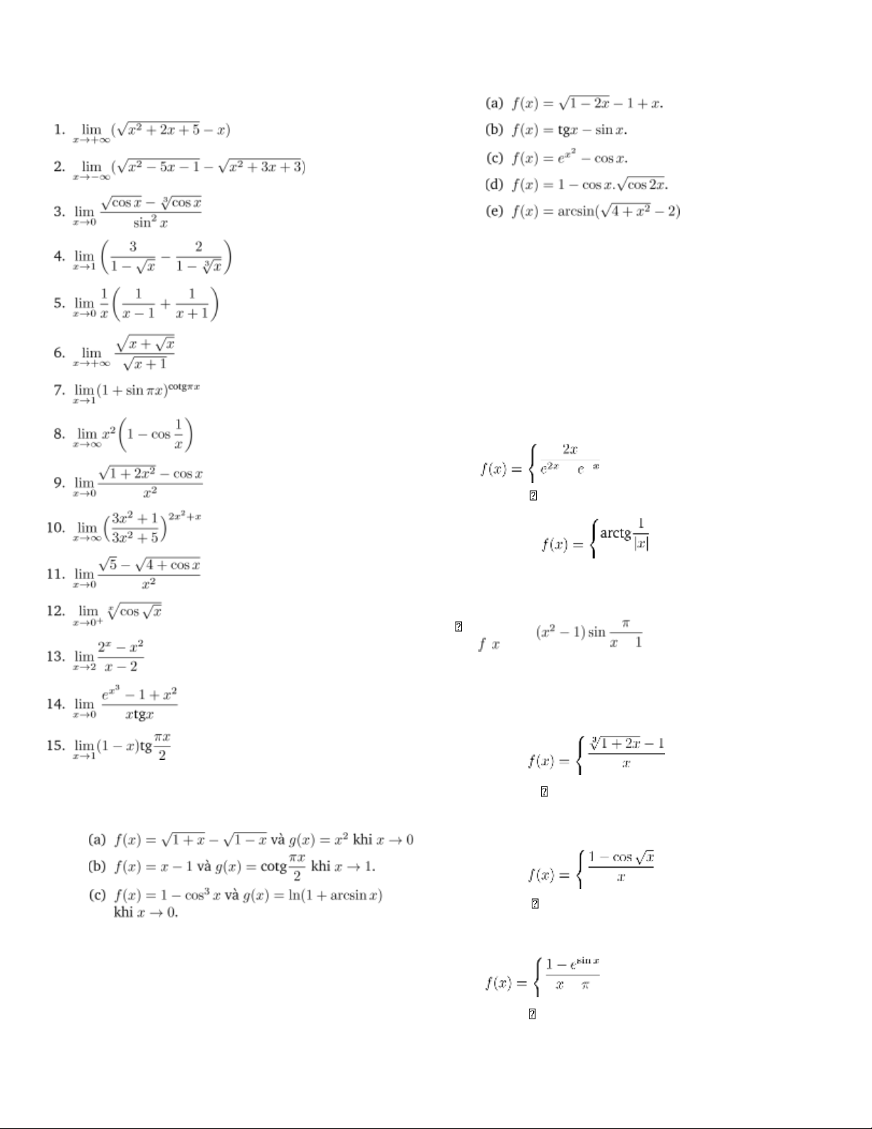 Bài 2. Vô cùng bé, vô cùng lớn     a + x2  nếu x ≤ 0  1. So sánh các VCB sau:  5.   nếu x > 0     a  nếu x ≤ 0  .