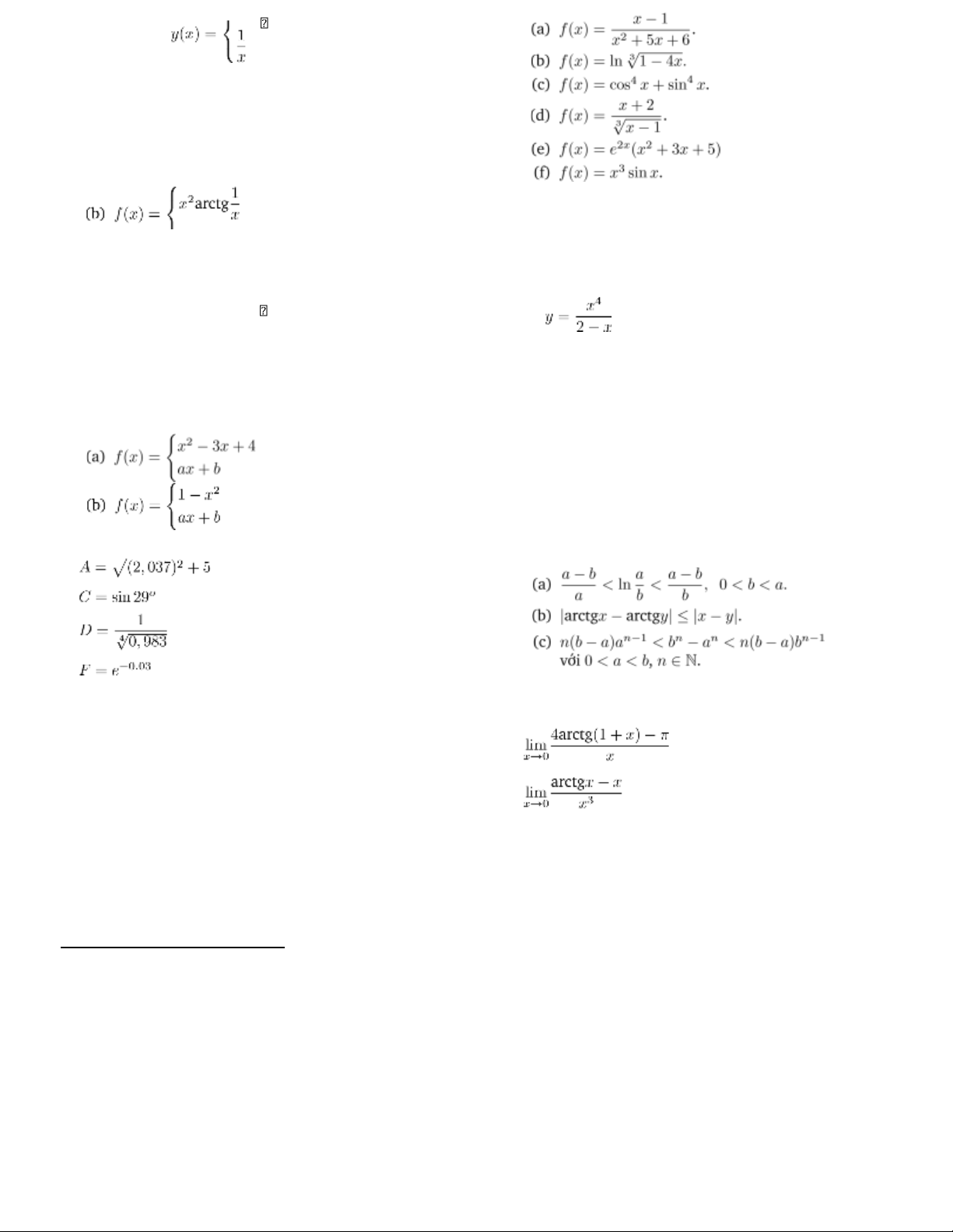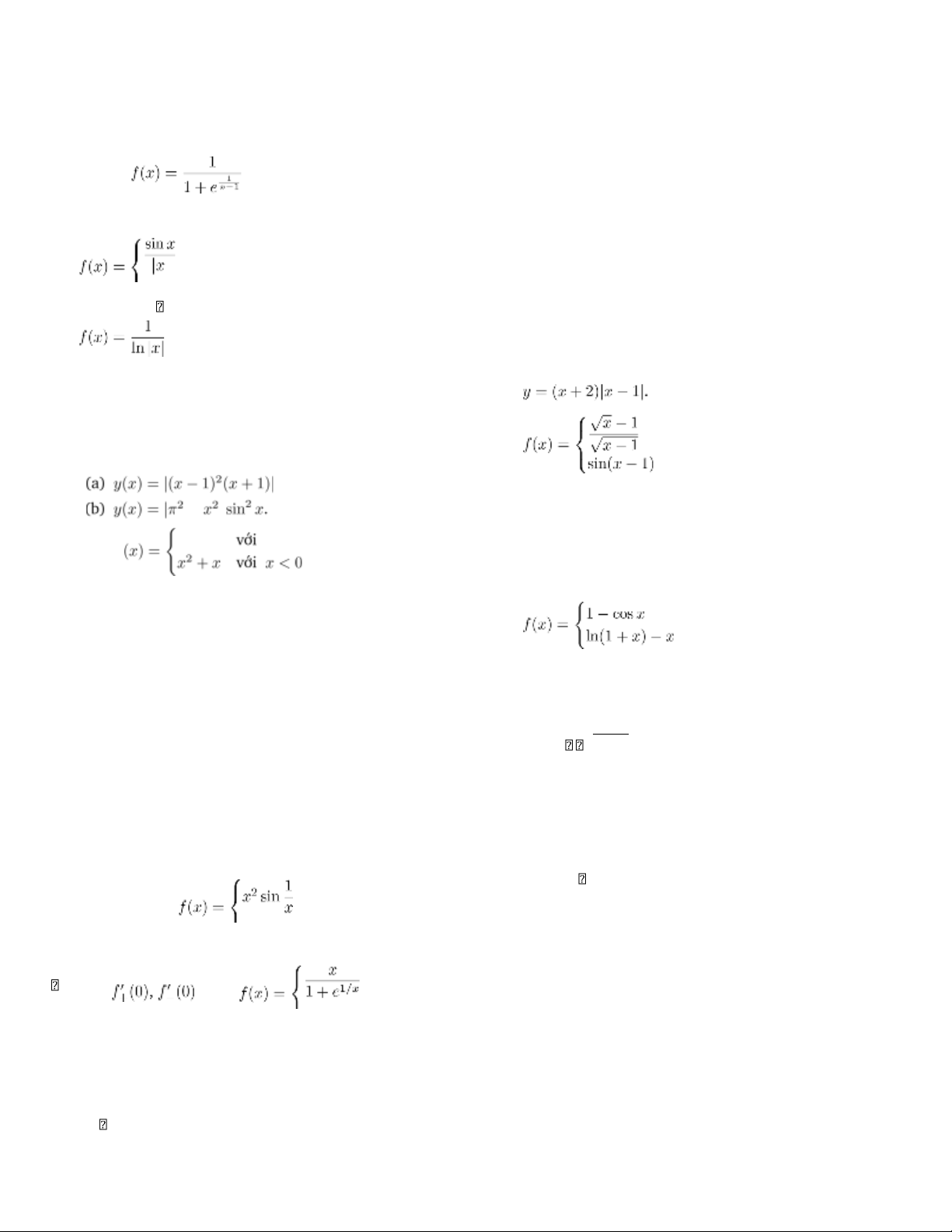 1. Tính đạo hàm của các hàm số sau:  .  1.    −  |  nếu x > 1   arctgx x ≥ 0  2.  nếu x ≤ 1  (c) f  nếu x ≤ 0
