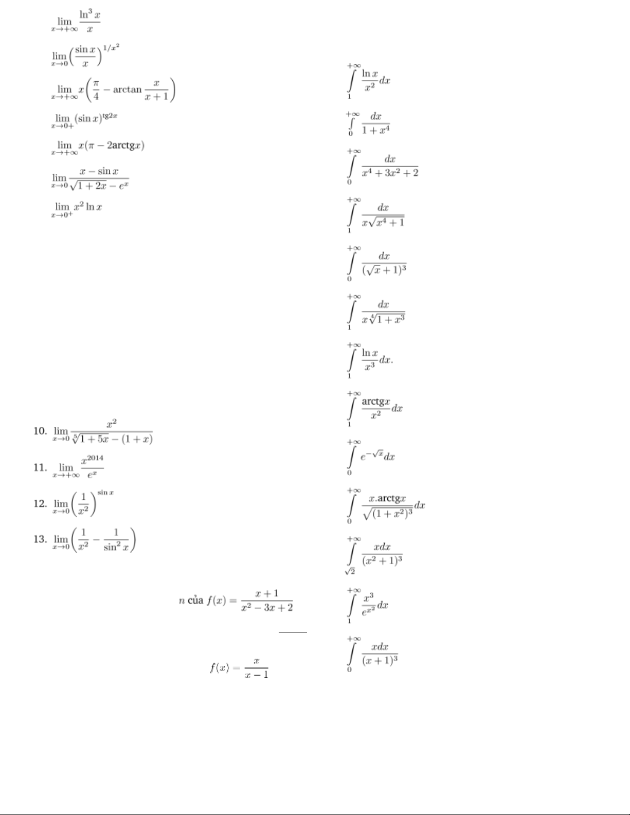 các tích phân suy rộng  3.  4.  5.  6.  7.  8.  9.