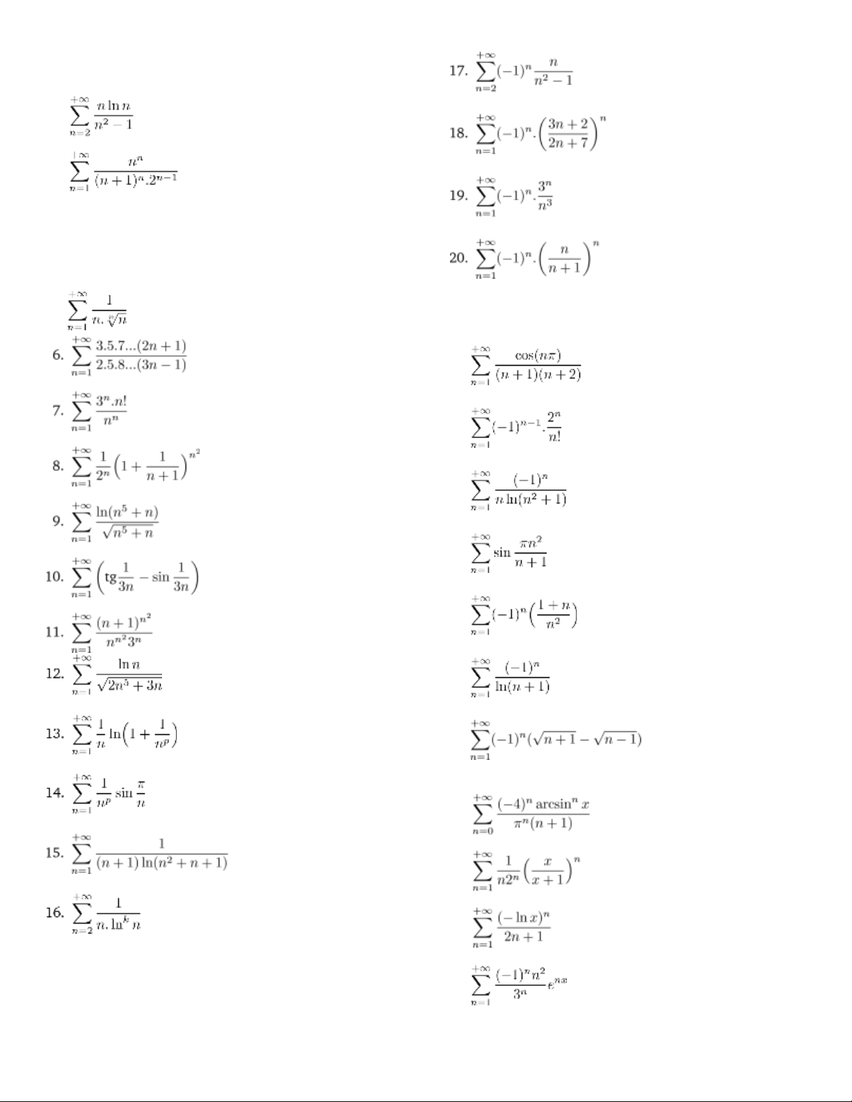 Bài 2. Xét sự hội tụ tuyệt đối, hội tụ tương đối  1.    2.    3.    4.    5.        6.      7.