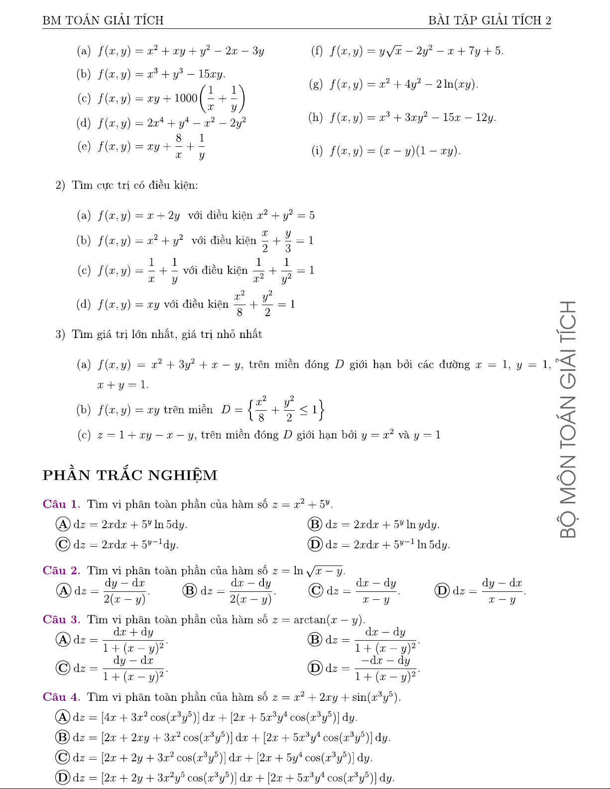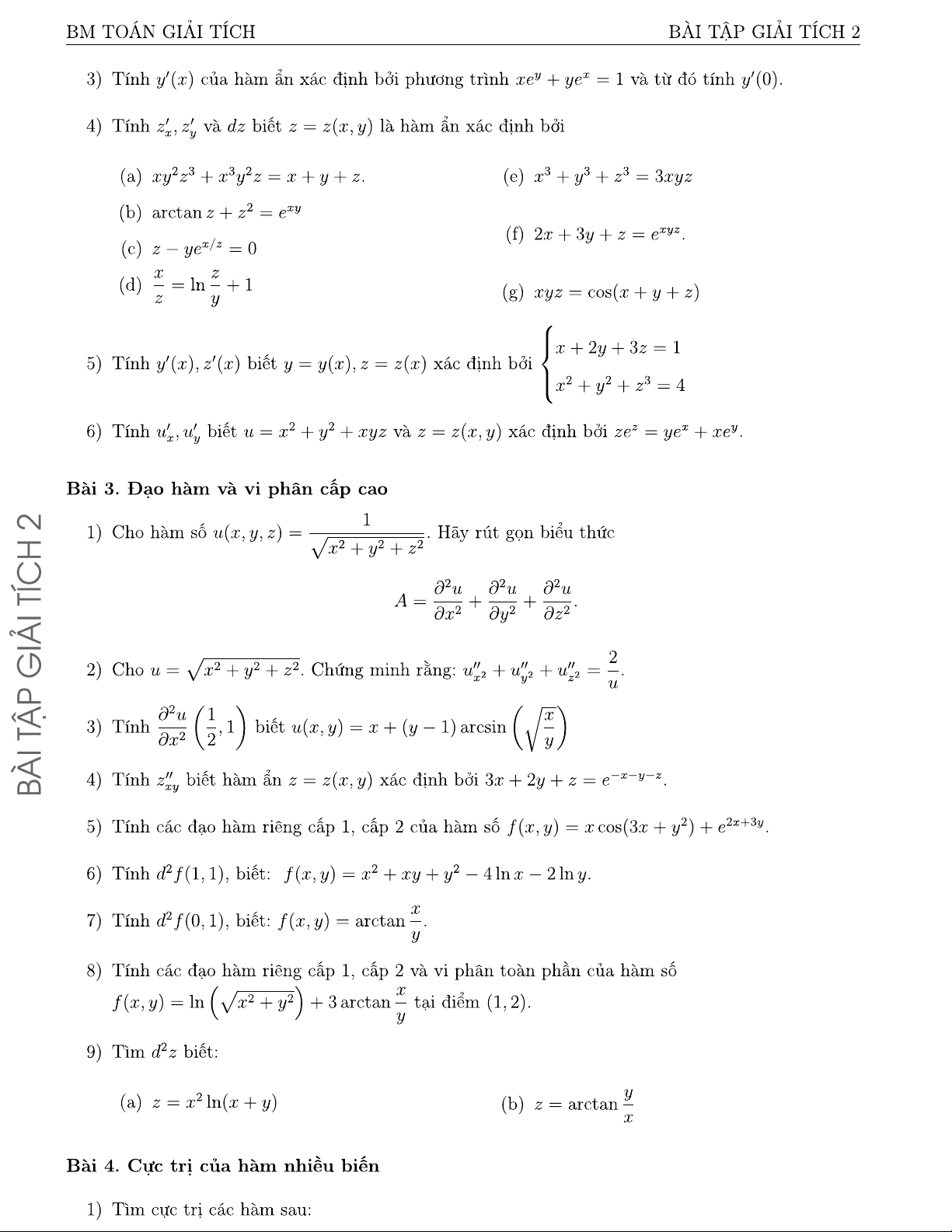 Bài tập giải tích 2 | Đại học Bách khoa Hà Nội