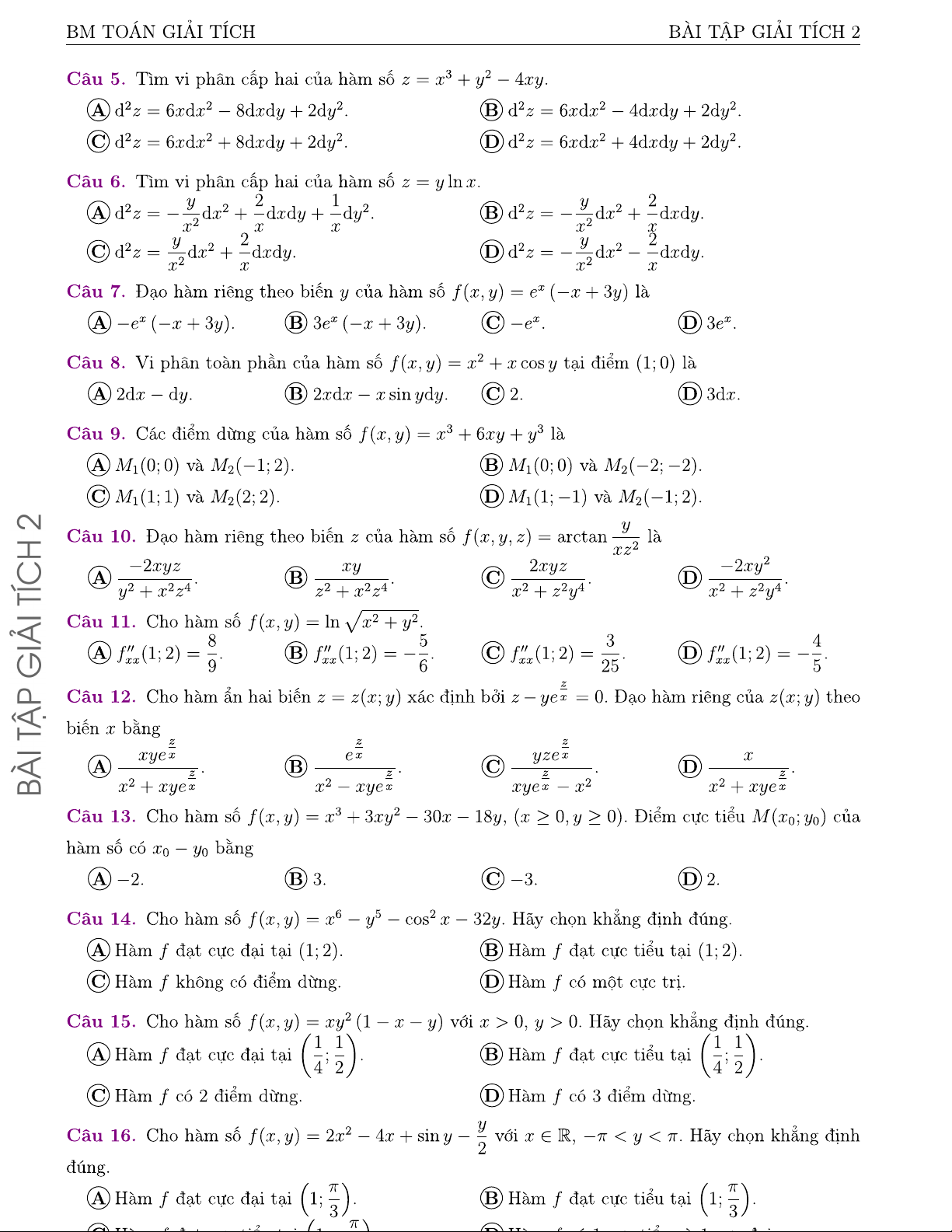 Môn: Giải tích 2 42 tài liệu