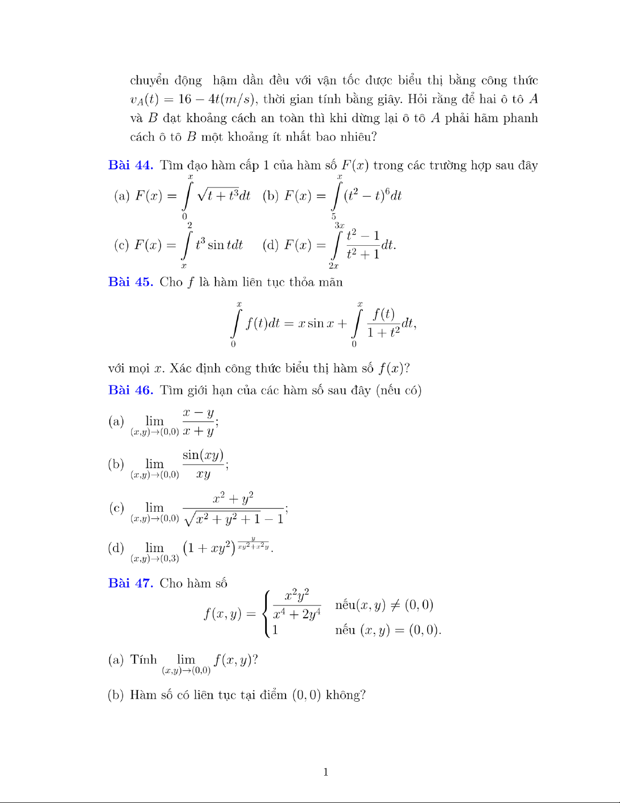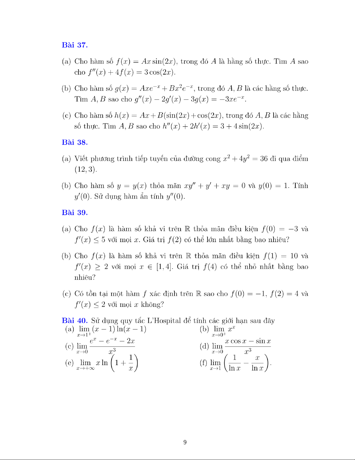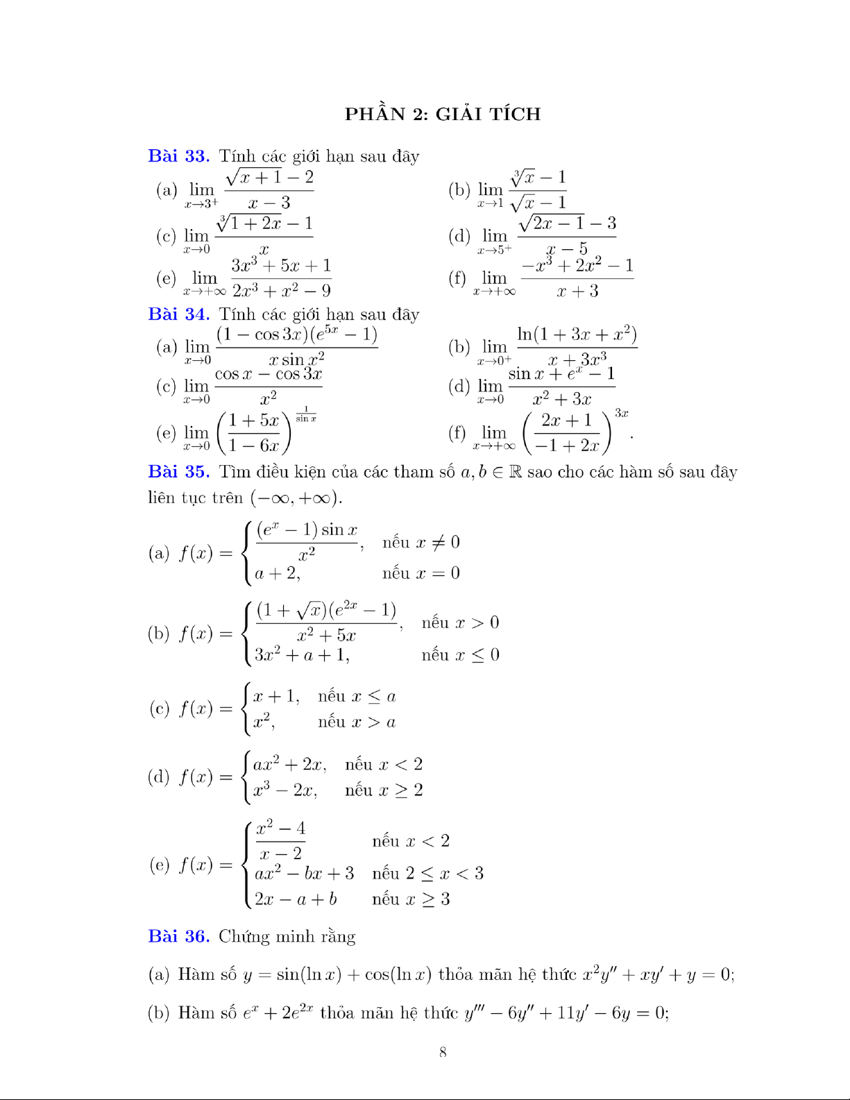 Bài tập Giải tích môn Toán cao cấp | Trường Quốc tế - Đại học Quốc gia Hà Nội