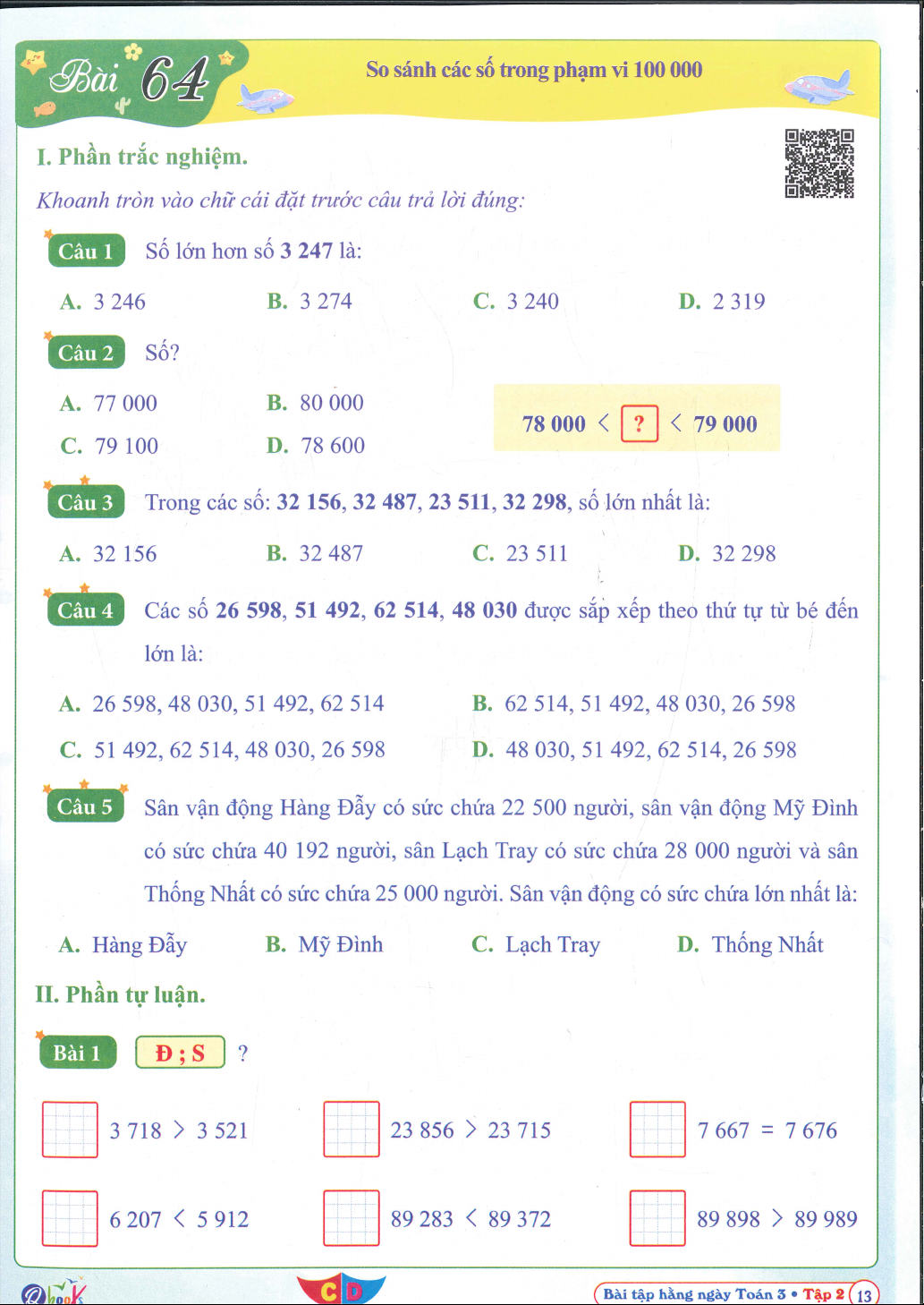 Bài tập hằng này toán 3 tập 2. Tài liệu giúp bạn tham khảo, ôn tập và đạt kết quả cao. Mời đọc đón xem!