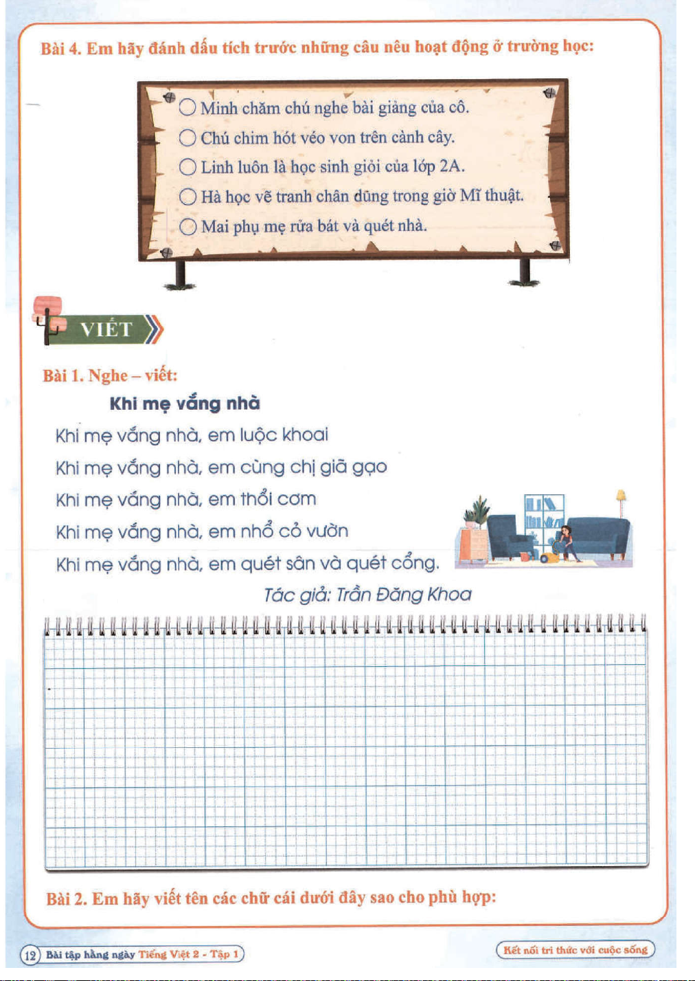 Bài tập hàng ngày Tiếng Việt lớp 2 Tập 1 Kết nối tri thức