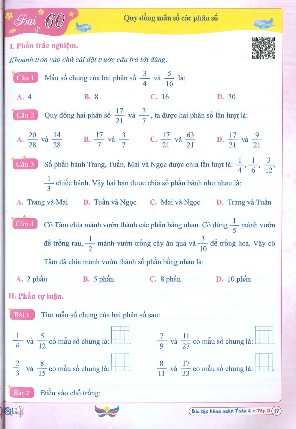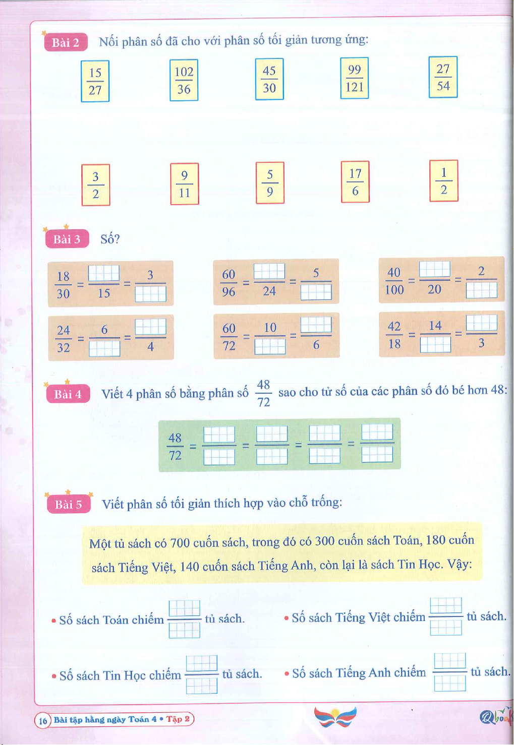 Bài tâp hàng ngày Toán 4 - Cánh diều - Tập 2. Tài liệu được sưu tầm giúp bạn tham khảo, ôn tập và đạt kết quả cao. Mời bạn đọc đón xem.