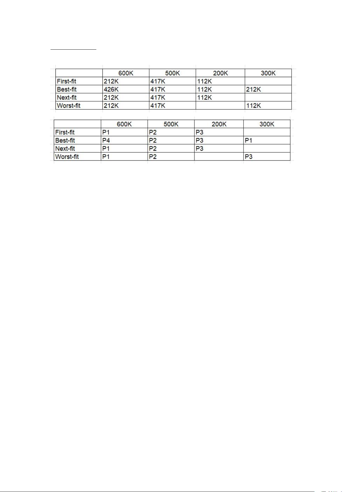3. Cho 6 phân vùng bộ nhớ có thứ tự và kích thước lần lượt là 300KB, 600 KB.