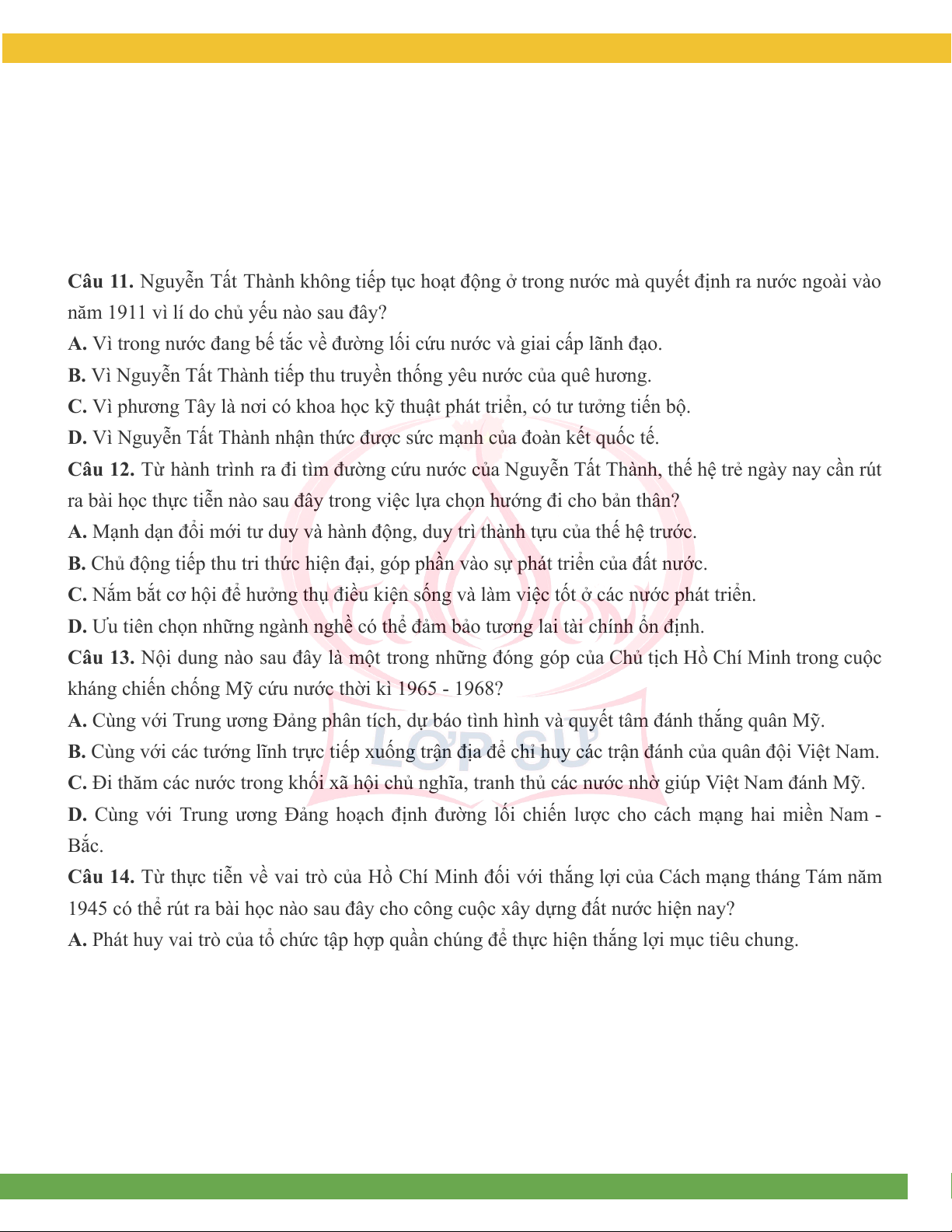 Câu 12. Từ hành trình ra đi tìm đường cứu nước của Nguyễn Tất Thành, thế hệ trẻ ngày nay cần rút
