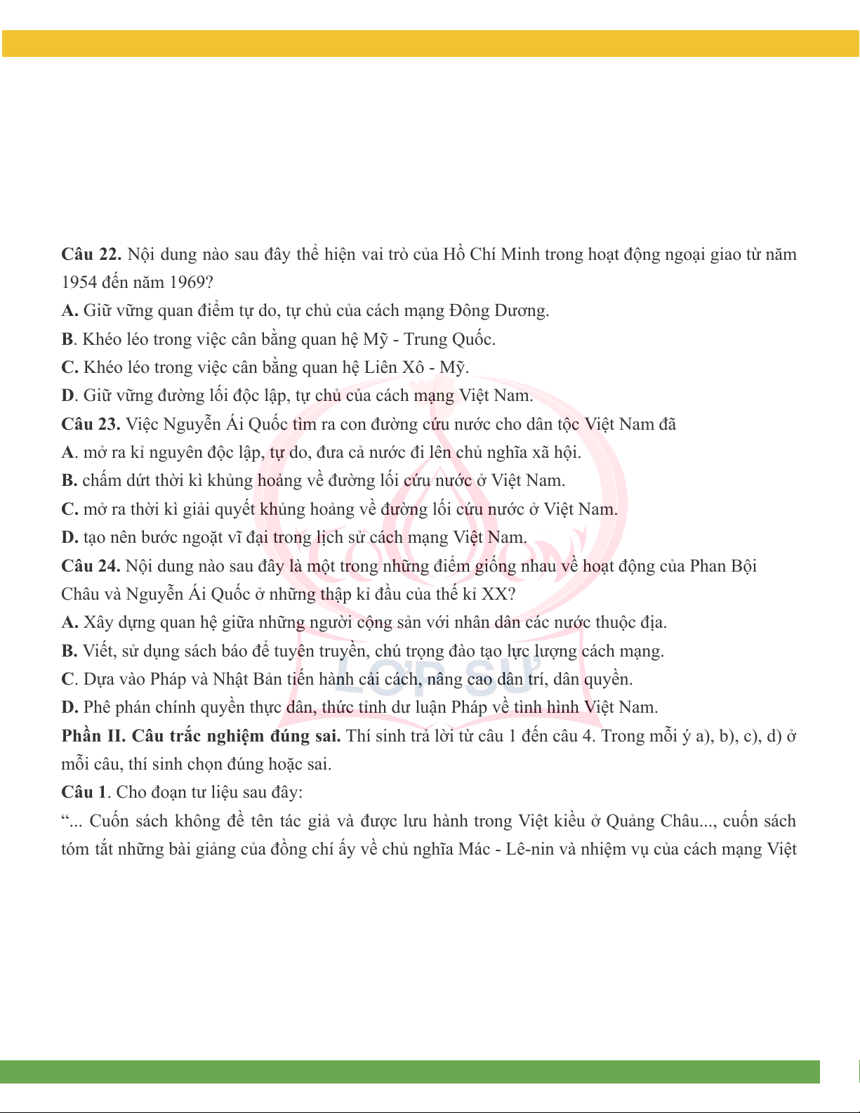 Câu 22. Nội dung nào sau đây thể hiện vai trò của Hồ Chí Minh trong hoạt động ngoại giao từ năm 1954 đến năm 1969?