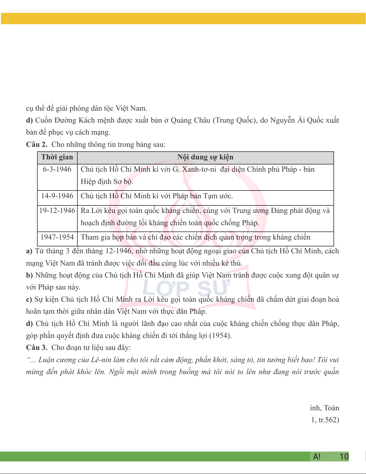 Câu 1. Hoạt động của Nguyễn Ái Quốc - Hồ Chí Minh trong những năm 1945-1954 có điểm khác