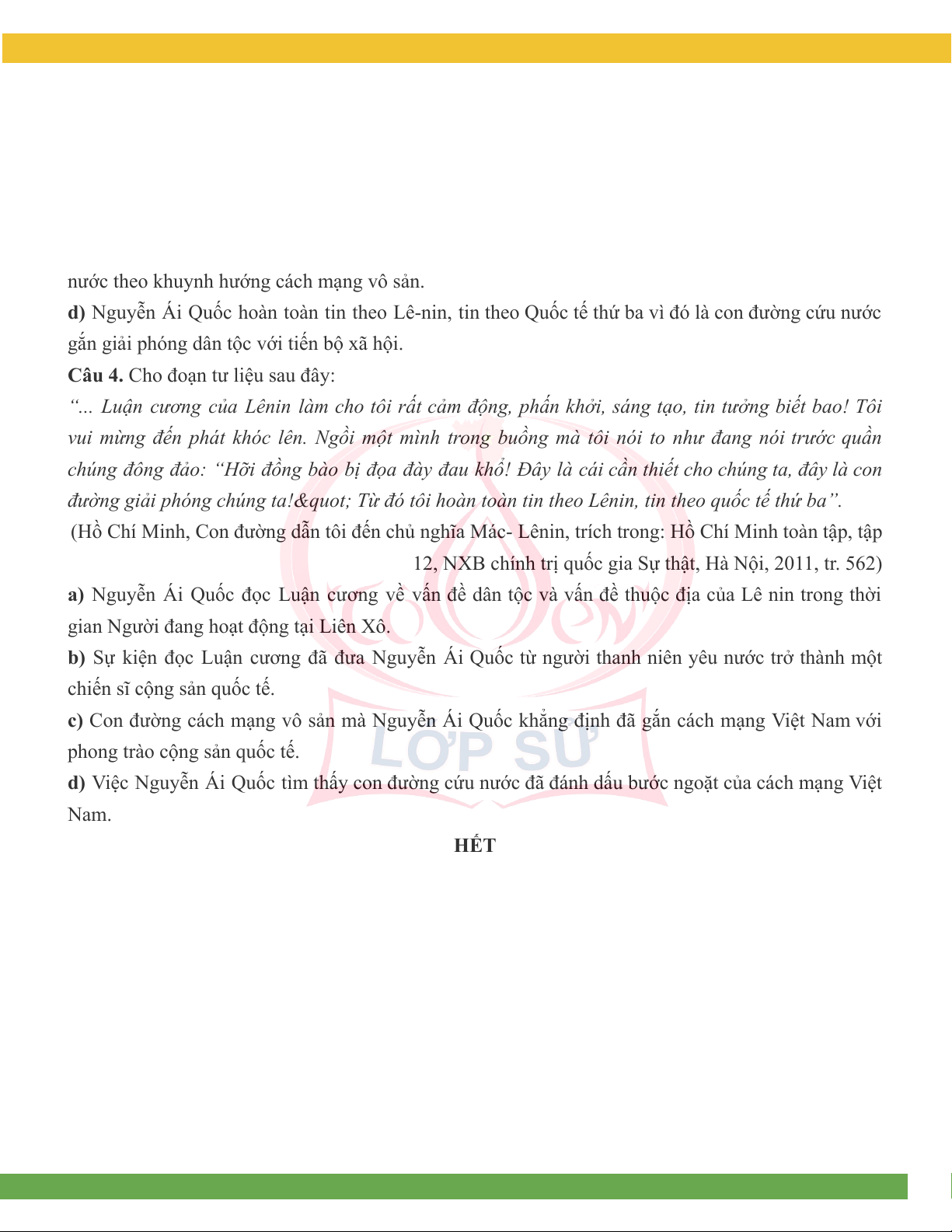 d) Việc Nguyễn Ái Quốc tìm thấy con đường cứu nước đã đánh dấu bước ngoặt của cách mạng Việt Nam. HẾT